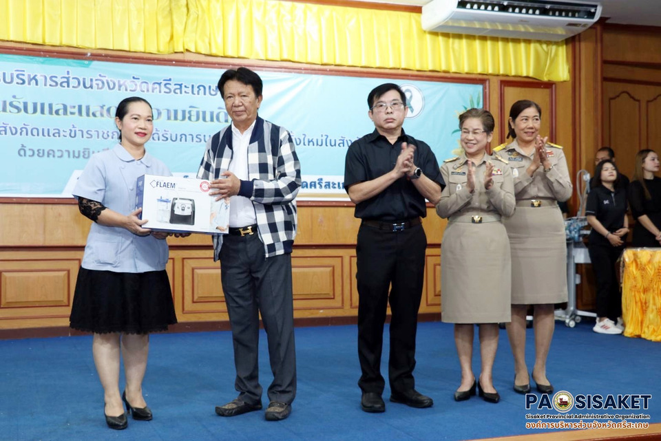 โดยมอบ เครื่องดูดเสมหะ จำนวน 5 เครื่อง แก่โรงพยาบาลส่งเสริมสุขภาพตำบลบ้านหนองไฮ อำเภอเมืองศรีสะเกษ จำนวน 1 เครื่อง และโรงพยาบาลส่งเสริมสุขภาพตำบลบ้านกุดโง้ง อำเภอเมืองศรีสะเกษ จำนวน 1 เครื่อง โรงพยาบาลส่งเสริมสุขภาพตำบลบ้านทุ่งรวงทอง อำเภอโนนคูณ จำนวน 1 เครื่อง โรงพยาบาลส่งเสริมสุขภาพตำบลบ้านบกขี้ยาง อำเภอกันทรารมย์ จำนวน 1 เครื่อง โรงพยาบาลส่งเสริมสุขภาพตำบลบ้านโคกเพชร อำเภอขุขันธ์ จำนวน 1 เครื่อง พร้อมด้วยเครื่องวัดความดันโลหิตชนิดอัตโนมัติ พร้อมวัดความอิ่มตัวของออกซิเจนในเลือด จำนวน 1 เครื่อง แก่โรงพยาบาลส่งเสริมสุขภาพตำบลบ้านชำเม็ง อำเภอกันทรลักษ์ มอบเครื่องตรวจวิเคราะห์ คลื่นไฟฟ้าหัวใจ พร้อมระบบประมวลผล จำนวน 1 เครื่อง แก่โรงพยาบาลส่งเสริมสุขภาพตำบลบ้านชำเม็ง อำเภอกันทรลักษ์ นอกจากนี้ยังได้เตรียมการมอบให้อีกหากมีงบประมาณเพิ่มเติม