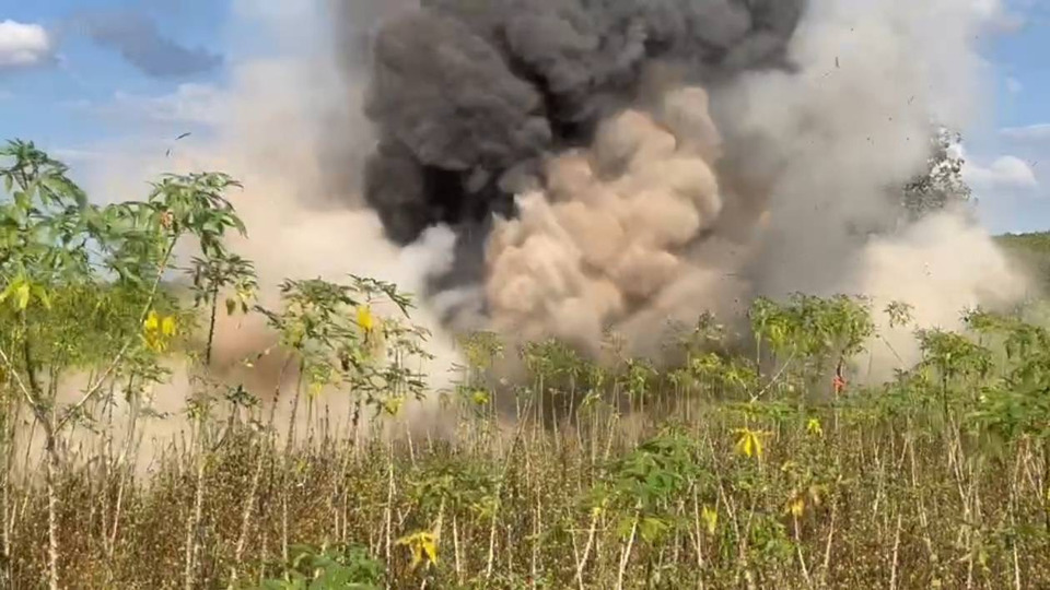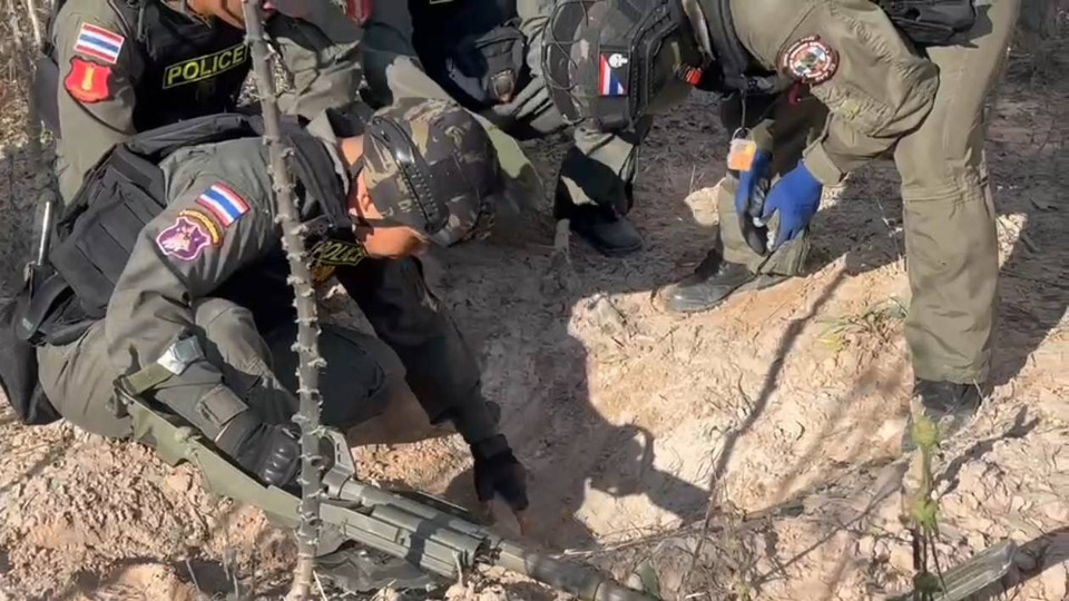 วันที่ 2 ธ.ค. 2568 ผู้สื่อข่าวรายงานว่า วานนี้ (1 ธ.ค. 68) ร.ต.อ.ธีรภัทร นามมั่น หัวหน้าชุด EOD ตชด.22 นำกำลังเจ้าหน้าที่ชุด EOD กก.ตชด.22 ร่วมกับ ชุด EOD ภ.จว.ศรีสะเกษ ร่วมกันตรวจสอบหลุมร่องรอยลูกปืนใหญ่ที่ฝ่ายทหารกัมพูชายิงมาตกในหมู่บ้านชายแดนบ้านหนองหว้า บ้านโศกขามป้อม ต.ภูผาหมอก อ.กันทรลักษ์ จ.ศรีสะเกษ จำนวน 6 หลุม ทราบว่าเป็นหลุมของลูกกระสุนปืนใหญ่ขนาด 105 มม. ซึ่งแตกไปแล้ว ตกลงบริเวณสวนยางพารากับไร่มันสัมปะหลัง และพื้นที่นาของชาวบ้าน ใกล้ชุมชน โดยเจ้าหน้าที่ได้ชี้แจงให้ประชาชนทราบและทำความเข้าใจว่า มันไม่มีอันตรายแล้ว ให้สบายใจได้