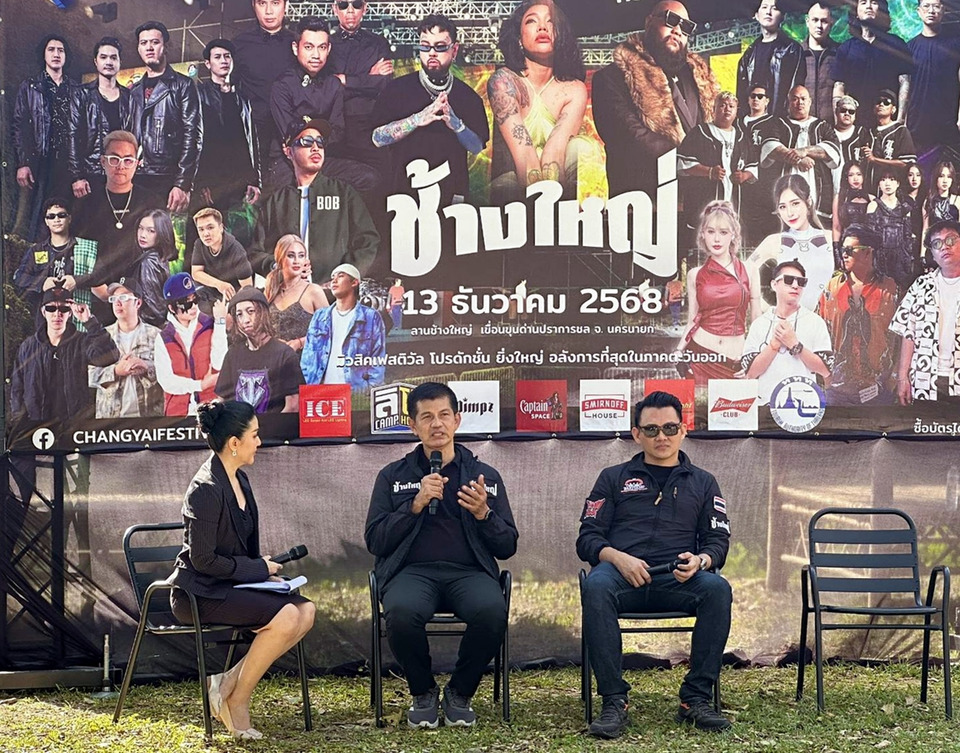 นครนายกแถลงข่าวคอนเสิร์ต “ช้างใหญ่มิวสิคเฟสติวัล” ครั้งแรกของจังหวัด เตรียมจัดใหญ่ 13 ธ.ค. 68 พร้อม 14 ศิลปิน 2 เวทีสุดอลังการ รายได้ส่วนหนึ่งสมทบอนุรักษ์ช้างป่า–ช่วยผู้ป่วยติดเตียง และดันจังหวัดเป็นแลนด์มาร์กท่องเที่ยวใหม่ใกล้เขื่อนขุนด่านปราการชล