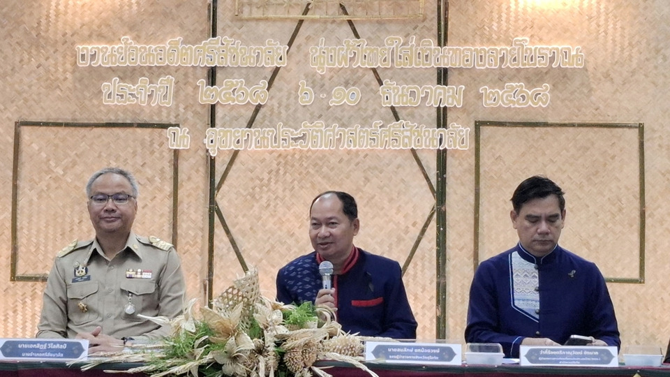 รองพ่อเมืองสุโขทัย พร้อมนายอำเภอศรีสัชนาลัย จังหวัดสุโขทัย แถลงข่าวเชิญชวนมาเที่ยวงาน "ย้อนอดีตศรีสัชนาลัย นุ่งผ้าไทย ใส่เงิน ทอง ลายโบราณ สืบสานวัฒนธรรม อันล้ำค่า "ประจำปี พ.ศ.2568