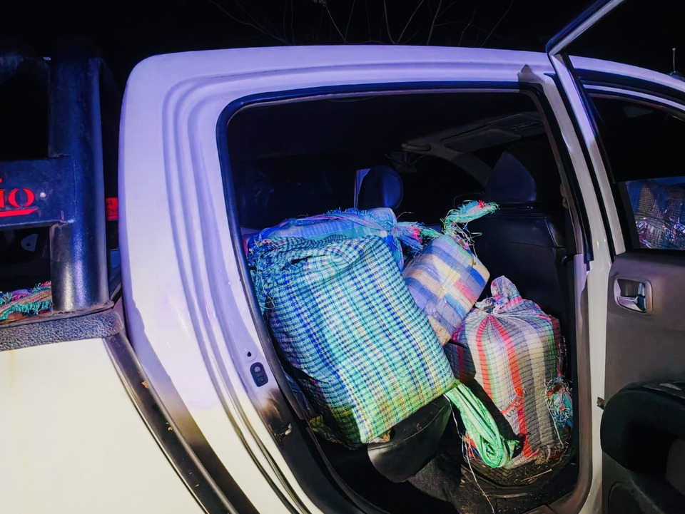 จนกระทั่งพบว่ารถยนต์กระบะคันดังกล่าวได้ถูกจอดระหว่างขับหนี โดยคนขับรถได้ทิ้งรถและอาศัยความชำนาญในพื้นที่หลบหนีเข้าป่าไปได้ เจ้าหน้าที่จึงจัดกำลังควบคุมพื้นที่และตรวจสอบที่กระบะหลังรถและเบาะนั่งภายในรถพบบรรทุกกระสอบฟางสีรุ้งมาด้วยรวมจำนวน 14 ใบ ภายในบรรจุยาเสพติดให้โทษประเภท 1 (ยาบ้า) กระสอบละ 200,000 เม็ด รวมยาบ้าทั้งหมดประมาณ 2,800,000 เม็ด จึงได้ยึดไว้เป็นของกลางและนำกำลังออกติดตามหาตัวคนหลบหนีต่อไป