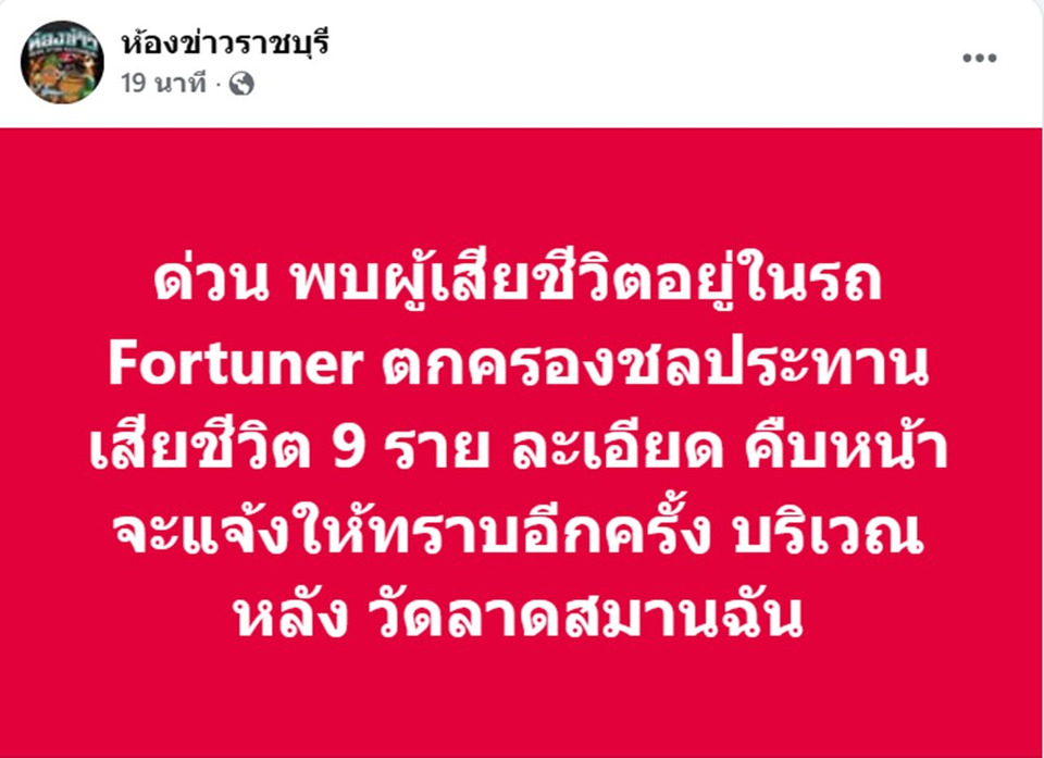 เมื่อวันที่ 3 ธ.ค.68 เพจเฟซบุ๊ก “ห้องข่าวราชบุรี” ได้โพสต์รายงานด่วนเมื่อช่วงเช้าวันนี้ ระบุว่า