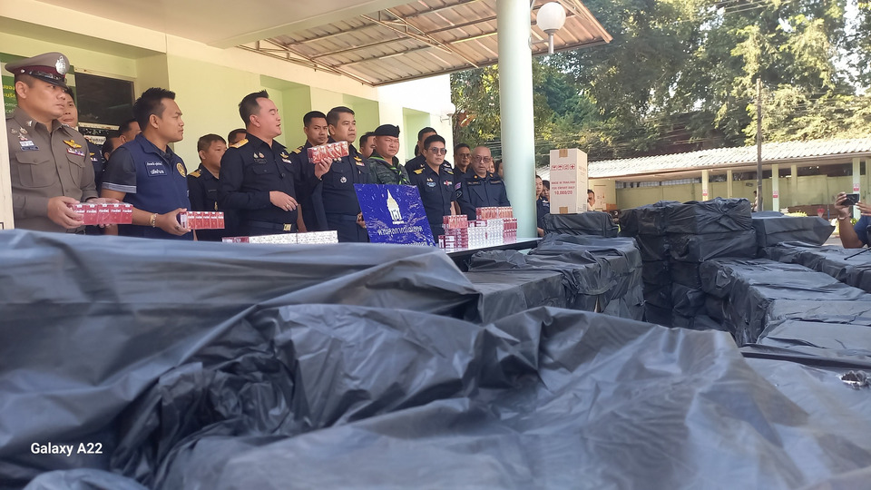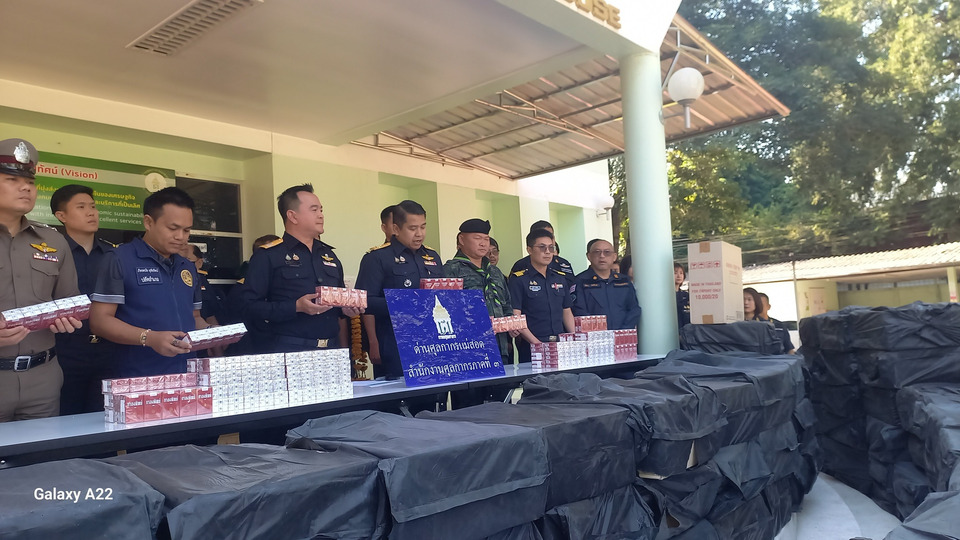 วันที่ 3 ธันวาคม 2568. นายยอดพล วิชญกุล นายด่านศุลกากรแม่สอด ชายแดนไทย-เมียนมา อ.แม่สอด จ.ตาก ได้แถลงข่าวผลการป้องกัน ปราบปรามและจับกุม ร่วมกับ ส่วนควบคุมทางศุลกากร สำนักงานศุลกากรภาคที่ 3,นายคมวิช สุขพจนี สรรพสามิตพื้นที่ตาก และหน่วยงานความมั่นคงในพื้นที่ พ.อ.ทรงพล อุ่นสมบัติ รองผู้บังคับหน่วยเฉพาะกิจราชมนู- ตัวแทน พ.ต.อ.รัง ดาวดึงษ์ ผู้กำกับการสถานีตำรวจภูธรแม่สอด-นายภัทรดนัย อุทัยรัตน์ ปลัดอำเภอแม่สอด ตัวแทนฝ่ายปกครองอำเภอแม่สอด บูรณาการ สนธิกำลังร่วม เข้มงวดในการปราบปรามสินค้าผิดกฎหมาย เข้มงวดในการปราบปรามสินค้าผิดกฎหมาย โดยได้ตรวจยืด บุหรี่ ยี่ห้อ กรองทิพย์ 90 มีถิ่นกำเนิดในประเทศไทย (เพื่อการส่งออกเท่านั้น) จำนวน 10,000 หีบห่อ (2,000,000 มวน) มูลค่าประมาณ 10,500,000 บาท (สิบล้านห้าแสนบาท) ตามนโยบายของรัฐบาลในการป้องกันและปราบปรามการลักลอบนำของผิดกฎหมายเข้าในประเทศ
