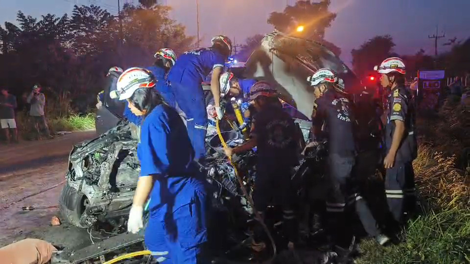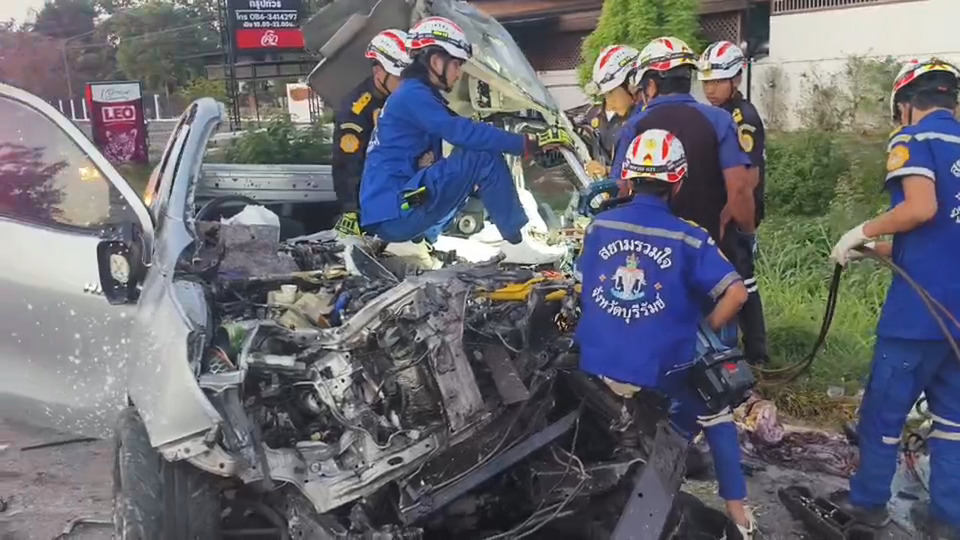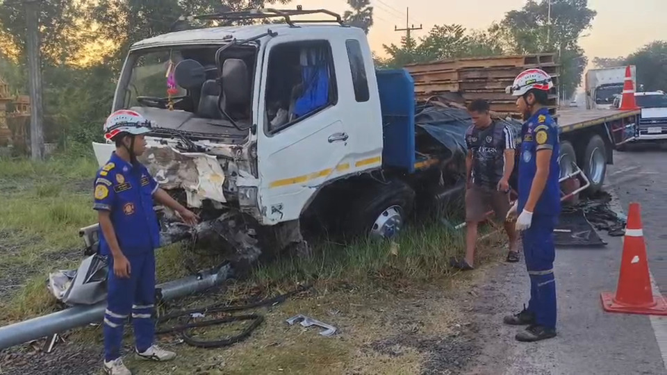 วันที่ 3 ธ.ค.68 เวลาประมาณ 06.00 น.พ.ต.ท.กรณ์พงษ์ มงคลธนสุพัฒน์ สารวัตร(สอบสวน)สภ.นางรอง อ.นางรอง จ.บุรีรัมย์ ได้รับแจ้งมีเหตุรถชนกัน บนถนนนางรอง-ชำนิ บริเวณหน้าร้านเอกเขนก (175) ต.นางรอง อ.นางรอง จ.บุรีรัมย์ คาดมีผู้เสียชีวิต จึงรุดไปตรวจสอบพร้อมหน่วยกู้ภัยสยามรวมใจปู่อินทร์ ที่เกิดเหตุพบรถบรรทุกยี่ห้อมิตซูบิชิ ทะเบียน 84-2753 บุรีรัมย์ จอดยู่บริเวณข้างถนนนางรอง-ชำนิ ด้านหน้าได้รับความเสียหายด้านหน้าชนกับเสาไฟฟ้าของหมวดการทางได้รับความเสียหายหันหน้ารถไปทางทิศเหนือ มีนายอารุณ (สงวนนามสกุล) อายุ 53 ปี ภูมิลเนาอยู่ที่หมู่ 3 ต.หนองเยือง อ.บ้านใหม่ไชยพจน์ จ.บุรีรัมย์ แสดงตนเป็นผู้ขับขี่ ไม่ได้รับบาดเจ็บ ห่างกันพบรถยนต์ปิคอัพยี่ห้อโตโยต้า สีเทา ทะเบียน ผก2365 พระนครศรีอยุธยา จอดอยู่บนถนนนางรอง-ชำนิ ได้รับความเสียหายด้านหน้าพังยับเยินสภาพหลังคาเปิดออก พบร่างนายกิตติธัช (สงวนนามสกุล) อายุ 29 ปี ภูมิลำเนาอยู่ที่ หมู่ 4 ต.นาวังหิน อ.พนัสนิคม จ.ชลบุรี ติดอยู่ภายในรถในตำแหน่งผู้โดยสารข้างตำแหน่งคนขับเสียชีวิต