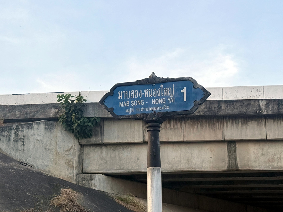 เมื่อวันที่ 2 ธ.ค.68 ผู้สี่อข่าวได้ลงพื้นทื่ ไปยังซอยมาบสอง-หนองใหญ่1 ซึ่งเป็นซอยบ้านมาบสองตัดทะลุซอยโรงบำบัดน้ำเสีย เลืยบทางด่วนสาย 7 มอเตอร์เวย์ คุณปัท อายุ 38 ปี หนึ่งในชาวบ้านผู้ที่พักอาศัยอยู่บริเวณดังกล่าว ได้พาผู้สื่อข่าวตรวจสอบพื้นที่จริง เป็นถนนกำลังอยู่ในการก่อสร้าง อยู่ในสภาพที่ยังไม่เปิดใช้งาน มีป้ายบอกทางเบี่ยง ป้ายปิดถนนชั่วคราวล้มระเนระนาดอยู่ข้างทาง ถนนเป็นหลุมเป็นบ่อขนาดใหญ่ มีน้ำท่วมขัง ระยะทางประมาณ 300 เมตร มีการยกท่อฝาท่อระบายน้ำไว้รอเป็นขอบสูง มีร่องรอยการโดนกระแทก แตกบิ่นเป็นรอยทุกฝาท่อระบาย มีหญ้าปกคลุม บ่งบอกถึงสภาพที่ถูกทิ้งร้างไว้นานแรมปี