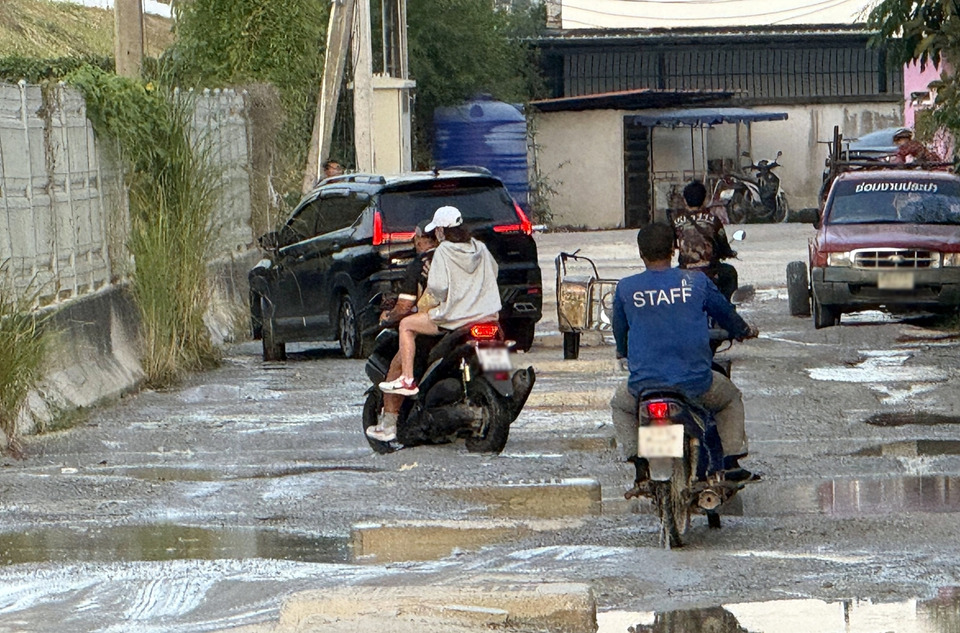 ถนนซอยมาบสอง–หนองใหญ่ 1 จ.ชลบุรี ถูกผู้รับเหมาทิ้งงานยาวนานเกือบ 2 ปี ชาวบ้านร้องเดือดร้อนหนัก ถนนเป็นหลุมบ่อ น้ำขัง ไร้ป้ายโครงการ วอนเทศบาลหนองปรือเร่งรัดผู้รับเหมาแก้ไขก่อนเกิดเหตุร้าย