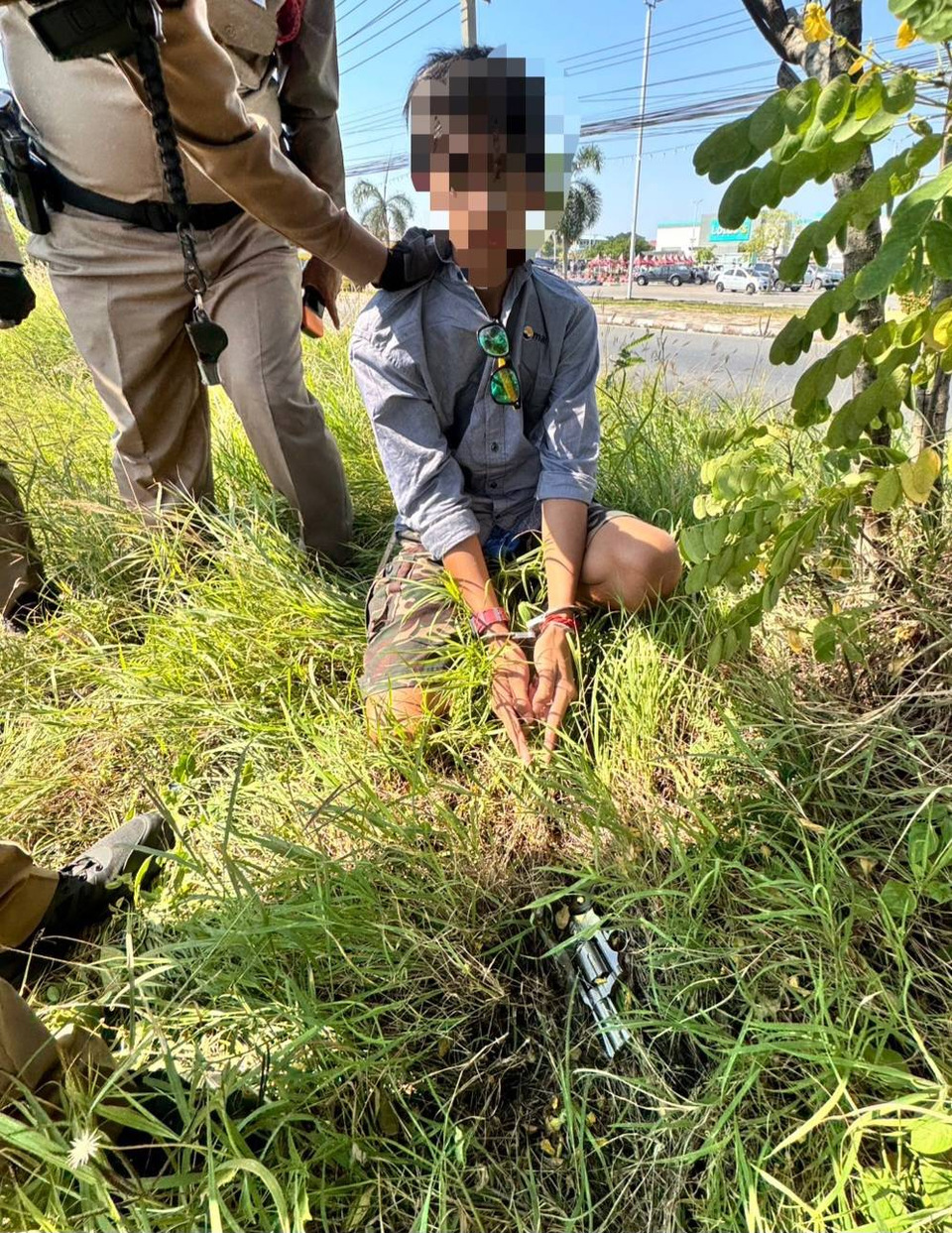 เจ้าหน้าที่จึงได้ควบคุมตัวทั้ง2คนเอาไว้พร้อมกับถามว่าเมื่อสักครู่ก่อนเข้าด่านโยนอะไรทิ้งข้างทาง ผู้ต้องหาย้อนถามตำรวจว่า"อ้าวเห็นด้วยหรือว่าโยนของทิ้ง ผมว่าผมรีบโยนทิ้งแล้วนะไม่น่าที่จะเห็นนะ" เจ้าหน้าที่ตำรวจจึงพาผู้ต้องหาทั้ง2คนไปยังข้างทางจุดที่โยนสิ่งของทิ้ง พบปืนลูกโม่ .38 พร้อมกระสุน 6 นัด อยู่บริเวณดังกล่าว ผู้ต้องหาเลยยอมรับสารภาพแต่โดยดีว่าพกปืนมาเหน็บไว้อยู่ที่เอวไม่คิดว่าจะมาเจอด่านตำรวจจึงรีบโยนทิ้งไปก่อนแล้วค่อยจะมาเอาทีหลังตอนพักเที่ยง ทุกวันผมก็ไม่ได้พกปืนนะครับแต่วันนี้ของเยอะเลยต้องพกปืน