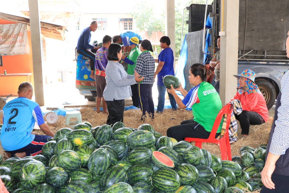 ทั้งนี้ คณะเจ้าหน้าที่ได้ลงพื้นที่ตรวจเยี่ยมแปลงปลูกแตงโมของกลุ่มผู้ปลูกแตงโมพร้อมทั้งสอบถามข้อมูลด้านการตลาดจากพ่อค้าที่มารับซื้อผลผลิต โดยพ่อค้าแจ้งว่าราคาแตงโมเกรด A ราคาอยู่ที่กิโลกรัมละ 10 บาท และคาดว่าปีนี้จะมีผลผลิตไม่ต่ำกว่า 300 - 400 ตัน ซึ่งสร้างรายได้ให้แก่กลุ่มเกษตรกรในพื้นที่มากกว่า 1 ล้านบาทต่อปี