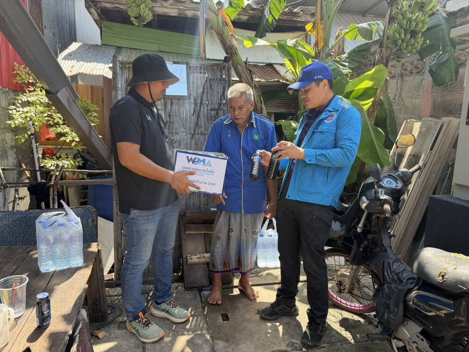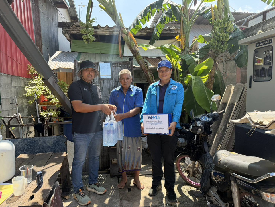 3. การจัดหาจุลินทรีย์ย่อยสลายสิ่งสกปรกและกำจัดกลิ่น (Effective Microorganisms : EM) มอบให้กับผู้ประสบภัย เพื่อนำไปใช้ย่อยสลายตะกอน ขยะอินทรีย์ และสิ่งสกปรกที่ตกค้างหลังน้ำลด ลดปัญหากลิ่นเหม็นและความเสี่ยงด้านสุขอนามัย พร้อมช่วยฟื้นฟูสภาพแวดล้อมเมืองให้กลับมาสะอาดอย่างรวดเร็ว