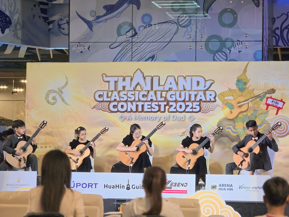 วันที่ 6 ธ.ค.68 ที่ศูนย์การค้า บลูพอร์ต หัวหิน จ.ประจวบฯ ได้มีพิธีเปิดงาน Thailand Classic Guitar Contest 2025 – “เพลงของพ่อ” เวทีประกวดกีตาร์คลาสสิกระดับชาติ ซึ่งจัดขึ้นต่อเนื่องเป็น ปีที่ 4 ด้วยความร่วมมือของ ชมรมหัวหินกีต้าร์, ศูนย์การค้า บลูพอร์ต หัวหิน, และ เดอะเลเจ้นท์อารีน่า โดยได้รับเกียรติจาก นายสุวัจน์ ลิปตพัลลภ อดีตรองนายกรัฐมนตรี เป็นประธานในพิธีเปิด พร้อมด้วย คุณวจีกลมเกลี้ยง กรรมการผู้จัดการ บลูพอร์ต หัวหิน, คุณซาบริน่า ฮอฟสเธทเธอร์ ผู้จัดการทั่วไป โรงแรมอินเตอร์คอนติเนนตัล หัวหิน รีสอร์ท, คุณปรีชา ชุมเมฆ ประธานชมรมหัวหินกีต้าร์
