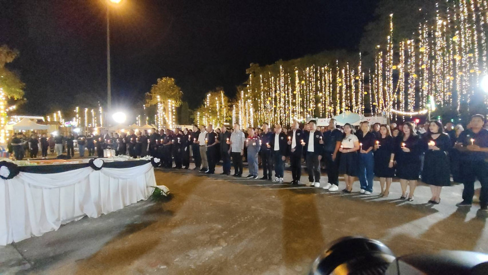 19.39 น. แสงเทียนนับพันดวง ส่องสว่างเต็มลานจามจุรี ช่วงเวลาสำคัญของค่ำคืนเกิดขึ้นเมื่อเวลา 19.39 น. ประชาชนทุกคนพร้อมใจกันจุดเทียนถวายความอาลัย น้อมจิตระลึกถึงพระมหากรุณาธิคุณของพระพันปีหลวงอย่างสงบงาม สะท้อนถึงความรักและความภักดีของพสกนิกรชาวบางสะพานที่มีต่อสถาบันพระมหากษัตริย์อย่างลึกซึ้ง