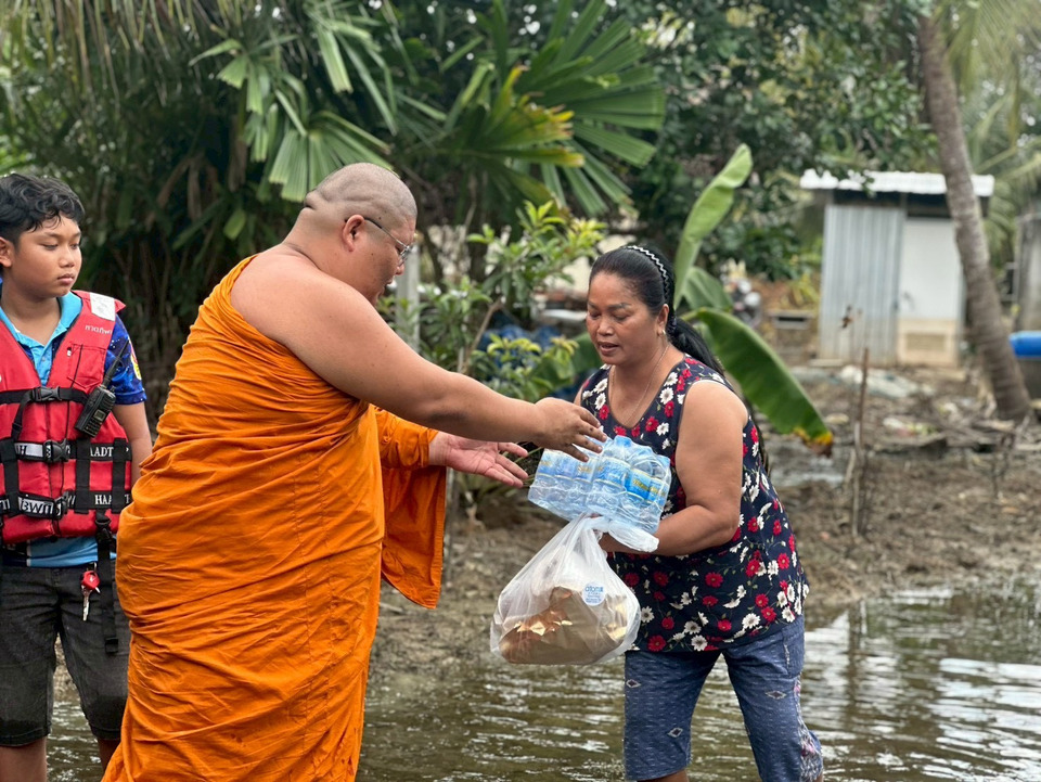 คณะสงฆ์-มูลนิธิกุศลศรัทธาพุนพิน - แท่นแก้ว ลงพื้นที่ มอบ ถุงยังชีพ เยียวยาผู้ประสบภัยน้ำท่วม อ. กระแสสินธุ์ จ. สงขลา
