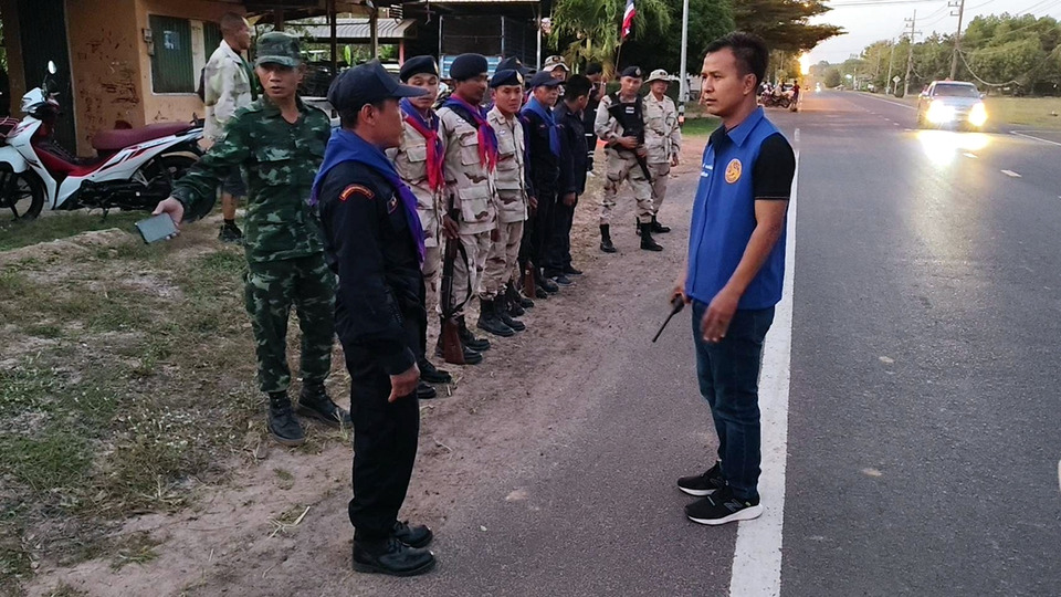 เมื่อเวลา 17.30 น. วันที่ 7 ธ.ค.68 ผู้สื่อข่าวรายงานว่า นายเอกวัฒน์ พวงประโคน นายอำเภอบ้านกรวด จังหวัดบุรีรัมย์ ได้นำสมาชิกกองอาสารักษาดินแดน หรือ อส.อำเภอบ้านกรวด และชุดรักษาความปลอดภัยหมู่บ้าน หรือ ชรบ. จากหมู่บ้าน และตำบลต่าง ๆ ในพื้นที่ อ.บ้านกรวด จ.บุรีรัมย์