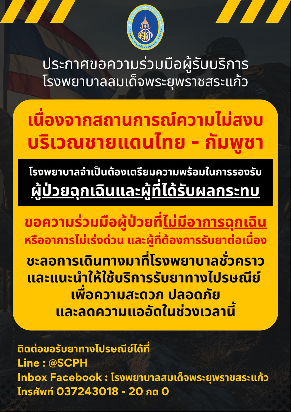 ประกาศขอความร่วมมือผู้รับบริการโรงพยาบาลสมเด็จพระยุพราชสระแก้ว