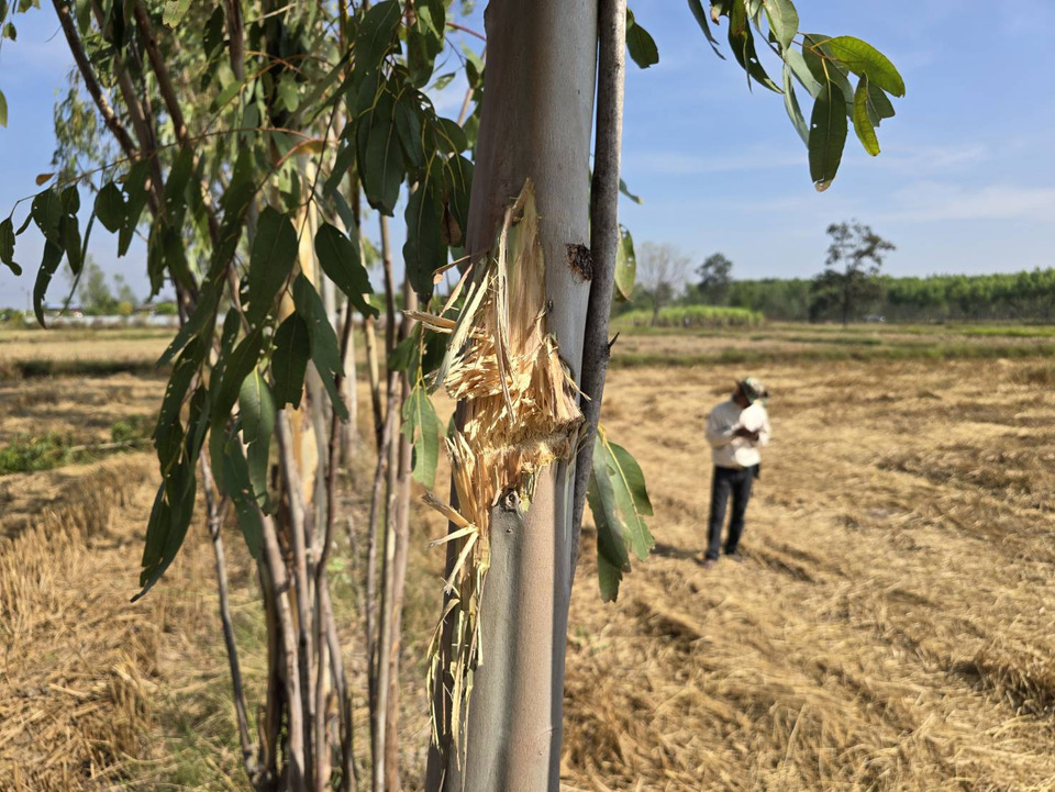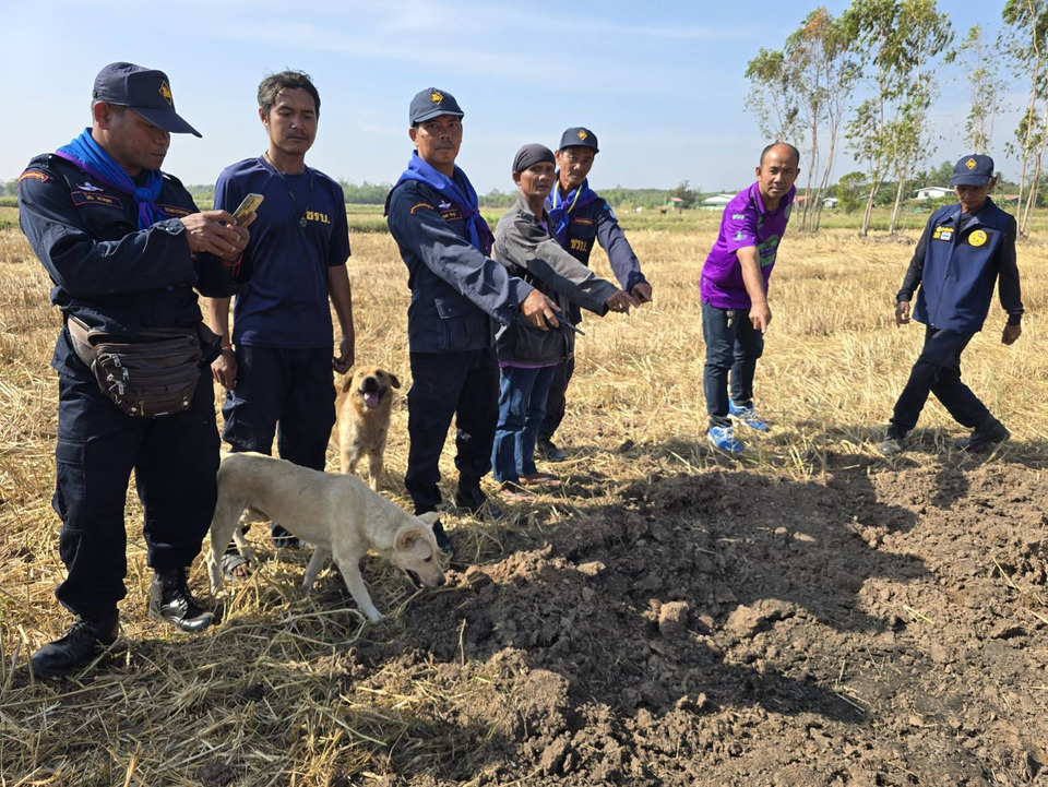 ผู้สื่อข่าวลงพื้นที่ตรวจสอบบริเวณบ้านหว้า พบหลุมระเบิดขนาดใหญ่กลางทุ่งนา พร้อมสะเก็ดระเบิดกระเด็นไปโดนต้นไม้โดยรอบ สะท้อนแรงระเบิดที่เกิดขึ้น ก่อนที่ทหารจะยืนยันว่าเป็นลูกปืนใหญ่จากฝั่งกัมพูชา