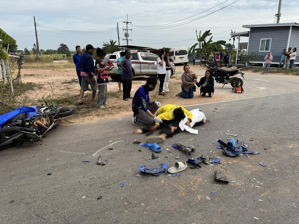 เมื่อเวลา 13.20 น. วันที่ 10 ธ.ค.68 พ.ต.ท.อุทัย พันธ์ทอง สว.(สอบสวน) สภ.หนองกุงศรี จ.กาฬสินธุ์ ได้รับแจ้งเหตุอุบัติเหตุรถเฉี่ยวชนกันรุนแรง มีผู้เสียชีวิตและได้รับบาดเจ็บ บนถนนสายบ้านดงมูล ต.ดงมูล – บ้านศรีสว่าง ต.หนองบัว อ.หนองกุงศรี จ.กาฬสินธุ์ บริเวณหน้าลานรับซื้อหัวมันสำปะหลัง "ส.กาฬสินธุ์" หลังรับแจ้งจึงรุดไปตรวจสอบที่เกิดเหตุพร้อมด้วย หน่วยกู้ชีพร่วมใจกาฬสินธุ์สงเคราะห์ จุดหนองกุงศรี และแพทย์เวร รพ.หนองกุงศรี