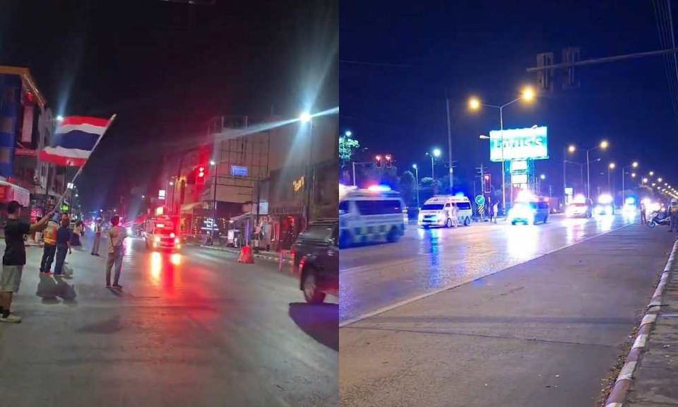 ผู้สื่อข่าวรายงานว่า เมื่อเวลา 20.30 น. วันที่ 10 ธันวาคม 2568 เจ้าหน้าที่หน่วยกู้ภัยในจังหวัดนครราชสีมา ได้รับภารกิจเร่งด่วน อพยพ “วีรบุรุษทหารกล้า” จำนวน 6 นาย ซึ่งได้รับบาดเจ็บจากการปะทะรุนแรงบริเวณแนวชายแดน พร้อมด้วยญาติใกล้ชิด ออกจากโรงพยาบาลประสาท จังหวัดสุรินทร์ เพื่อนำส่งต่อยังโรงพยาบาลค่ายสุรนารี จังหวัดนครราชสีมา ซึ่งบรรยากาศเต็มไปด้วยความเร่งรีบ ขบวนรถพยาบาลหลายคันวิ่งฝ่าสายลมยามค่ำคืน ไฟไซเรนสว่างวาบสลับเสียงสัญญาณก้องถนน เสียงเจ้าหน้าที่ที่คอยประคองผู้บาดเจ็บอย่างระมัดระวัง ขณะที่ญาติหลายรายมีสีหน้าเคร่งเครียดและเป็นห่วงทหารกล้าที่ต่อสู้อยู่ด่านหน้า และเมื่อขบวนรถผ่านตามเส้นทาง ก่อนถึงโรงพยาบาลค่ายสุรนารี ปรากฏว่า ประชาชนจำนวนมากมารอรับวีรบุรุษทหารกล้า พร้อมโบก ธงชาติไทย ส่งกำลังใจให้แนวหน้าผู้ปกป้องผืนแผ่นดิน หลายคนยกมือไหว้และตะโกนให้กำลังใจ ขณะที่เจ้าหน้าที่รีบนำตัวทั้ง 6 นายเข้าห้องฉุกเฉินทันที