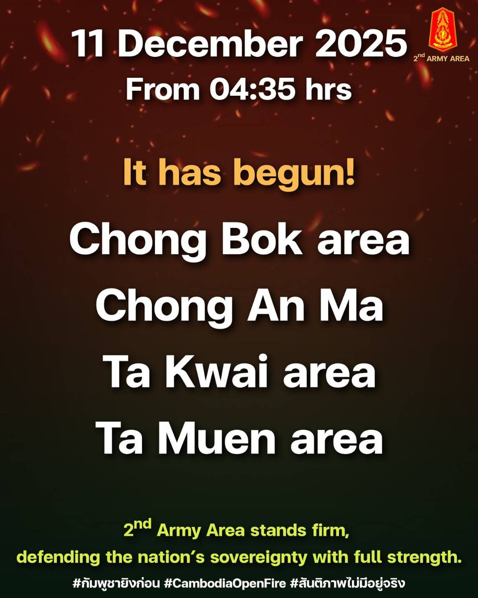 เมื่อวันที่ 11 ธันวาคม 2568 กองทัพภาคที่ 2 โพสต์เฟสบีกระบุว่า
