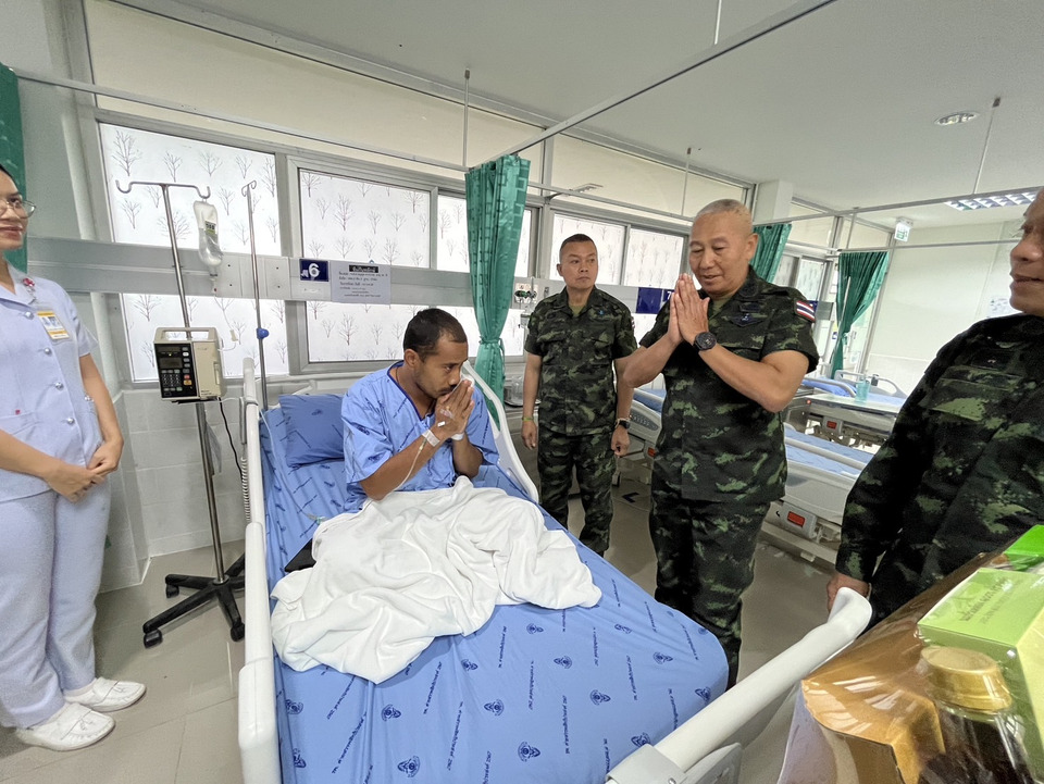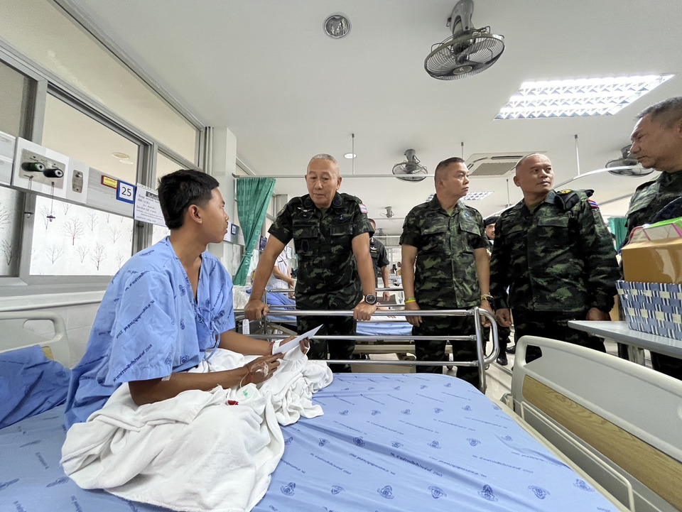 ผู้บัญชาการทหารบก พร้อมด้วย ที่ปรึกษาผู้บัญชาการทหารบก เดินทางเข้าเยี่ยมทหารที่ได้รับบาดเจ็บ ในพื้นที่ชายแดนไทย-กัมพูชา จังหวัดอุบลราชธานี จากเหตุปะทะรอบที่ 2 ซึ่งถูกนำตัวมารักษา โรงพยาบาลค่ายสรรพสิทธิประสงค์ และ โรงพยาบาลสรรพสิทธิประสงค์ ยืนยัน ทหารทุกคนกำลังใจดี รักษาตัวหายแล้ว จะขอกลับไปแนวหน้าเหมือนเดิมเพื่อสู้กับกัมพูชา