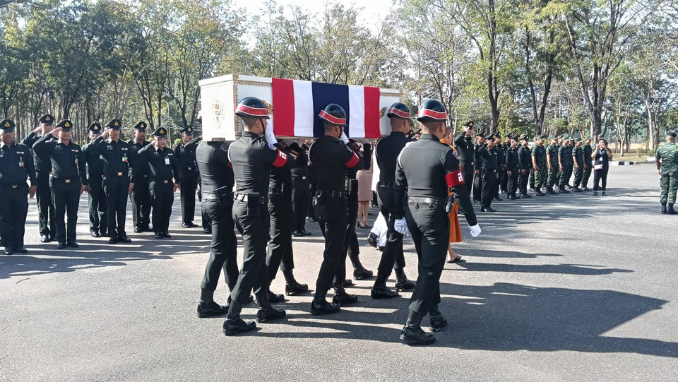 วันที่ 12 ธ.ค. 68 ที่อาคารสุริยะบูรพา ร.2 รอ. นายชนาธิป โคกมณี รองผู้ว่าราชการจังหวัดปราจีนบุรี เป็นประธานในการทอดผ้าบังสุกุลต่อหน้าหีบศพทหารกล้า พลทหารธนรัตน์ จันทร์ประทัด สังกัดกองพันทหารราบที่ 3 กรมทหารราบที่ 112 ซึ่งได้พลีชีพเพื่อชาติ ในการปกป้องอธิปไตยของประเทศชาติพื้นที่ชายแดนไทย-กัมพูชา ด้านจังหวัดสระแก้ว ตามเหตุการณ์เมื่อวันที่ 10 ธ.ค. 68 เวลาประมาณ 21.00 น. พลทหารธนรัตน์ จันทร์ประทัด ได้ปฏิบัติหน้าที่ผลักดันอริราชศัตรู ที่บริเวณยุทธภูมิบ้านบึงตากวน-บ้านคลองแผลง อำเภอตาพระยา จังหวัดสระแก้ว จนได้ถูกกระสุนปืนจากเครื่องยิงลูกระเบิดของฝ่ายตรงข้ามยิงเข้าใส่ยานยนต์รบ จนทำให้มีกำลังพลบาดเจ็บหลายนาย ได้ทำให้พลทหารธนรัตน์ จันทร์ประทัด เสียชีวิต ถือว่าทหารผู้กล้านี้ได้ต่อสู้อย่างเข้มแข็งกล้าหาญเสียสละเลือดเนื้อชีวิตเพื่อปกป้องอธิปไตยของชาติไทยอย่างแท้จริง สมควรได้กล่าวอย่างภาคภูมิใจว่าท่านได้ตอบแทนบุญคุณแผ่นดินอย่างยิ่งใหญ่สมชายชาติวีรบุรุษนักรบไทย