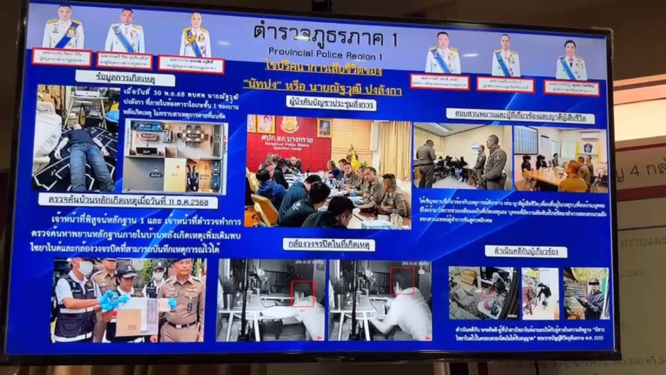 พล.ต.ท.วัฒนา ยี่จีน ผู้บัญชาการตำรวจภูธรภาค 1 เปิดเผยว่า ย้อนไปเมื่อวันที่ 30 พฤศจิกายน 2568 พนักงานสอบสวนได้รับแจ้งเหตุมีผู้เสียชีวิตภายในบ้านพัก เมื่อเดินทางไปตรวจสอบพร้อมแพทย์และบันทึกสถานที่เกิดเหตุ พบว่าญาติแจ้งว่าเป็นลักษณะนอนหลับเสียชีวิต จึงส่งศพไปตรวจพิสูจน์ที่สถาบันนิติวิทยาศาสตร์ ต่อมาหลังจากนำศพออกจากบ้าน ญาติและบุคคลใกล้ชิดได้เข้าไปพักอาศัยในบ้านหลังดังกล่าว และมีการนำสิ่งของบางอย่าง รวมถึงโทรศัพท์มือถือของผู้ตาย ออกไปตรวจสอบ