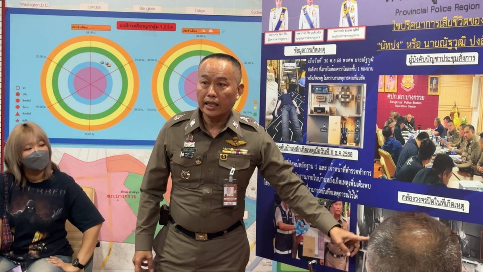 วันที่ 13 ธ.ค.68 เมื่อเวลา 11.00 น. ที่สถานีตำรวจภูธรบางกรวย จังหวัดนนทบุรี พล.ต.ท.วัฒนา ยี่จีน ผู้บัญชาการตำรวจภูธรภาค 1 พร้อมด้วย พล.ต.ต.อรรถพล อนุสิทธิ์ รองผู้บัญชาการตำรวจภูธรภาค 1, พล.ต.ต.เดชระพี คงดี ผู้บังคับการตำรวจภูธรจังหวัดนนทบุรี, พล.ต.ต.วรชาติ แสนคำ ผู้บังคับการสืบสวนตำรวจภูธรภาค 1, พล.ต.ต.หญิง สุเจตนา โสตถิพันธุ์ ผู้บังคับการพิสูจน์หลักฐาน 1, พ.ต.อ.จิรายุส วาณิชกูล รองผู้บังคับการตำรวจภูธรจังหวัดนนทบุรี, พ.ต.อ.ศุภชัย ศรีศักดิ์ ผู้กำกับการสืบสวนตำรวจภูธรจังหวัดนนทบุรี, พ.ต.อ.กิตติศักดิ์ พงศ์ธนารักษ์ ผู้กำกับการ สภ.บางกรวย และ พ.ต.ท.ชาญชัย วรัญญูรัตนะ รองผู้กำกับการสืบสวน สภ.บางกรวย ร่วมกันแถลงข่าวสรุปความคืบหน้าคดีการเสียชีวิตปริศนาของ นายณัฐวุฒิ ปงลังกา หรือ “นัทปง” อายุ 35 ปี ผู้สื่อข่าวช่อง 8 ซึ่งเสียชีวิตภายในบ้านพักย่านบางกรวย