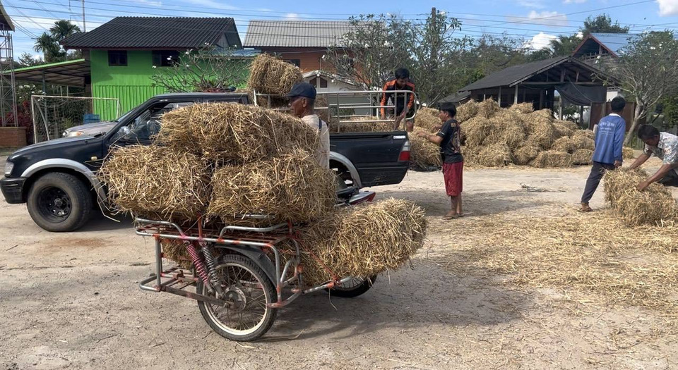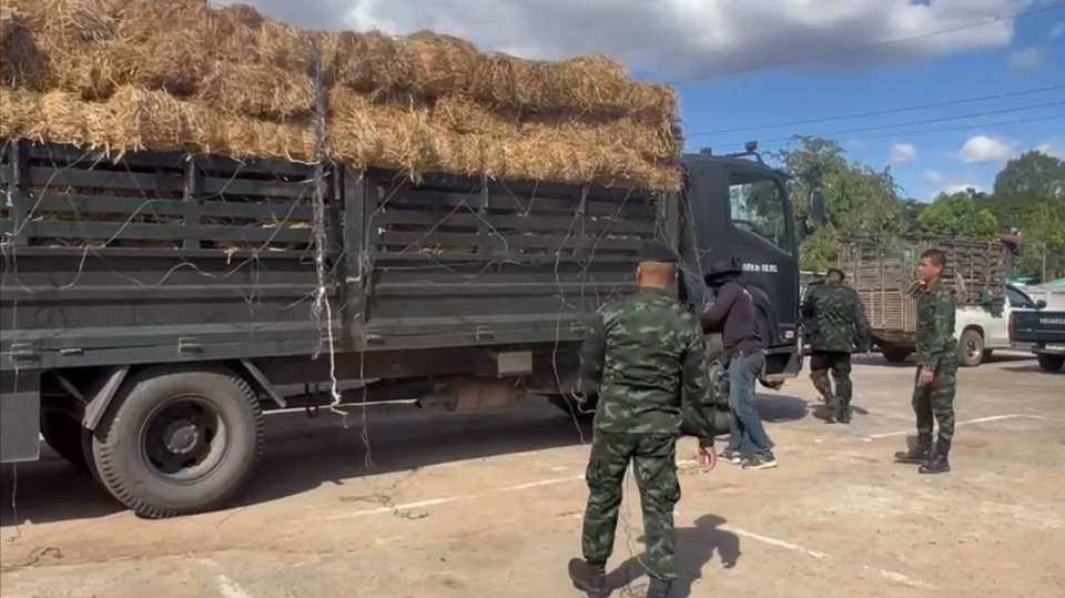เมื่อวันที่ 13 ธ.ค. 2568 พ.ท.อนุชา แสนคำภา หัวหน้าแผนกอาหารสัตว์ และเกษตรกรรมที่ 2 กรมการสัตว์กองทัพบก ร่วมกับ ปศุสัตว์อำเภอกันทรลักษ์ และปศุสัตว์จังหวัดศรีสะเกษ นำ หญ้ารูซี่ หรือหญ้าฟ่อนแห้งสำหรับสัตว์ ประเภท วัว ควาย จำนวน 1,500 ฟ่อน ไปมอบให้กับชาวเกษตรกรผู้เลี้ยงวัว ควาย ในพื้นที่ชายแดนไทย-กัมพูชา อ.กันทรลักษ์ โดยมี นางสมบัติ สายพันธ์ ผู้ใหญ่บ้านโนนดู่ หมู่ 4 ต.บึงมะลู อ.กันทรลักษ์ จ.ศรีสะเกษ เป็นตัวแทนรับมอบ