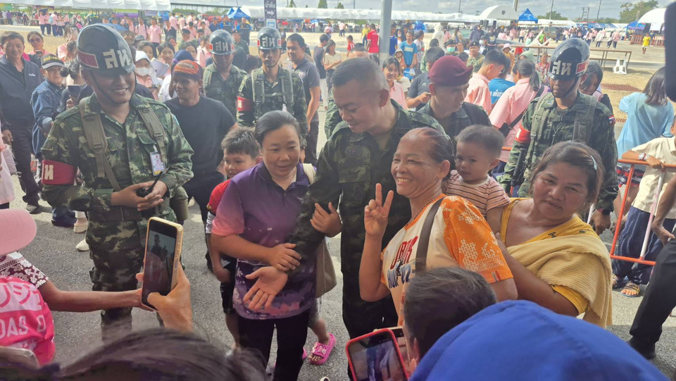 มอบสิ่งของหมากพลูให้กับผู้สูงอายุ พร้อมกล่าวปลอบใจอีกไม่นานก็จะได้กลับบ้าน ขอให้ช่วยเป็นกำลังใจลูกหลานทหารแนวหน้า ขอให้ผู้อพยพสามัคคีรักและดูแลกัน อีกไม่นานประเทศไทยจะสงบสุข พร้อมชี้การยุบสภาฯ ไม่กระทบต่อการสู้รบ
