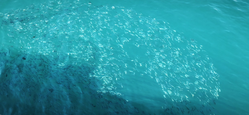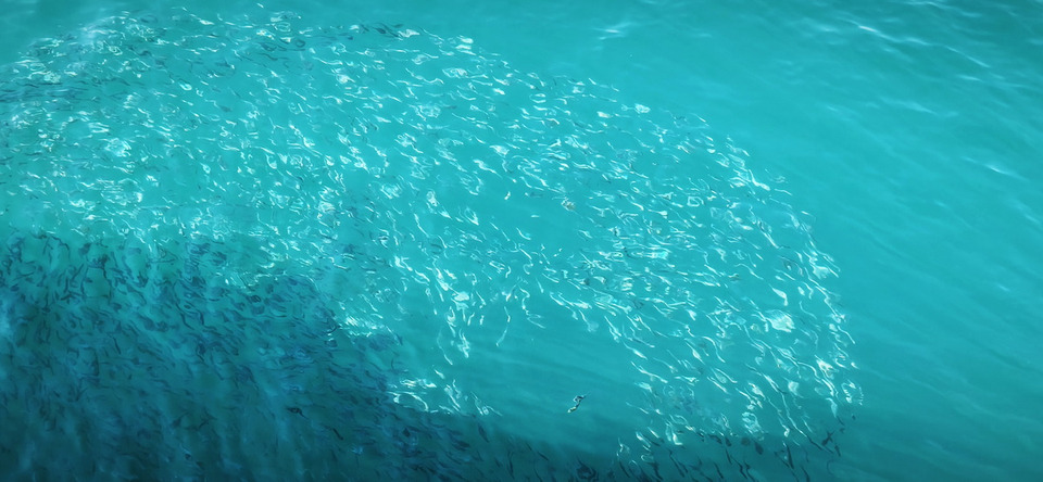 วันที่ 15 ธ.ค.2568 ผู้สื่อข่าวรายงานว่า ที่ท่าเรือโล๊ะจาก ต.พรุใน อ.เกาะยาว จ.พังงา ในขณะที่นักท่องเที่ยวกำลังรอขึ้นเรือไปท่องเที่ยวในทะเล ได้พบเห็น ฝูงปลาจำนวนมาก ว่ายน้ำรวมฝูงเข้ามาหากินบริเวณท่าเรือ และขณะที่เกาะกลุ่มว่ายน้ำนั้น ฝูงปลาจะเรียงตัวเปลี่ยนเป็นรูปแบบต่างๆ สร้างความตื่นเต้นประทับใจให้กับผู้พบเห็นเป็นอย่างมาก หลายคนหยิบโทรศัพท์ขึ้นมาบันทึกภาพความสวยงามของธรรมชาติที่หาชมได้ไม่บ่อยนัก