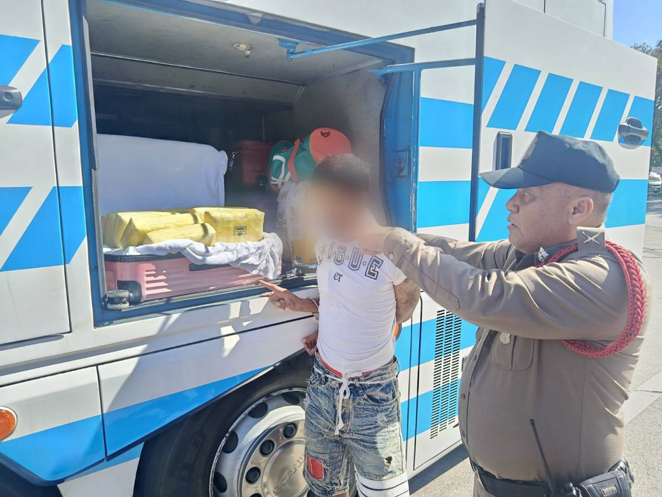 ต่อมาได้ตรวจพบชายต้องสงสัยทราบชื่อภายหลังคือ นายธีรพล (สงวนนามสกุล) โดยสารมากับรถทัวร์ มีท่าทีพิรุธ เจ้าหน้าที่จึงแสดงตัวและขอตรวจค้นกระเป๋าเดินทาง ระหว่างการตรวจค้นผู้ต้องหาได้พยายามวิ่งหลบหนี เจ้าหน้าที่จึงติดตามและสามารถควบคุมตัวไว้ได้