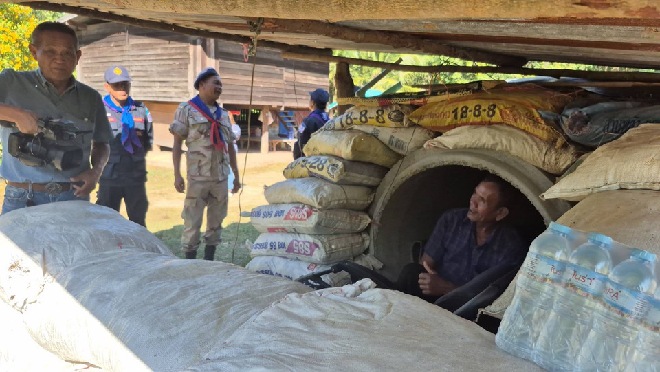 นายวสันต์ ขันติ อายุ 65 ปี บอกว่า ภรรยาและคนในครอบครัวที่เป็นผู้หญิงได้อพยพไปอยู่ศูนย์พักพิงแล้ว ส่วนตนเองอาสาเฝ้าบ้านเพราะมีสัตว์เลี้ยงที่ต้องดูแล แต่การอยู่ในหมู่บ้านก็ต้องระมัดระวัง หากได้ยินเสียงปืนใหญ่ก็ต้องรีบเข้าบังเกอร์ กลางคืนก็จะไม่เปิดไฟเพราะกลัวตกเป็นเป้า เนื่องจากกัมพูชามีโดรนพลีชีพ ก็ยอมรับว่ากลัวแต่มีหลุมหลบภัยก็อุ่นใจส่วนใหญ่ก็จะอยู่ในบังเกอร์ ก็อยากให้สถานการณ์สู้รบจบโดยเร็ว เพราะชาวบ้านต้องใช้ชีวิตด้วยความลำบาก ซ้ำขาดรายได้เพราะไม่สามารถไปทำมาหากินได้ อย่างตนเองก็ไม่ได้กรีดยางสัปดาห์กว่ารายได้หายไปเป็นหมื่น แต่ภาระหนี้สินยังมีเหมือนเดิม