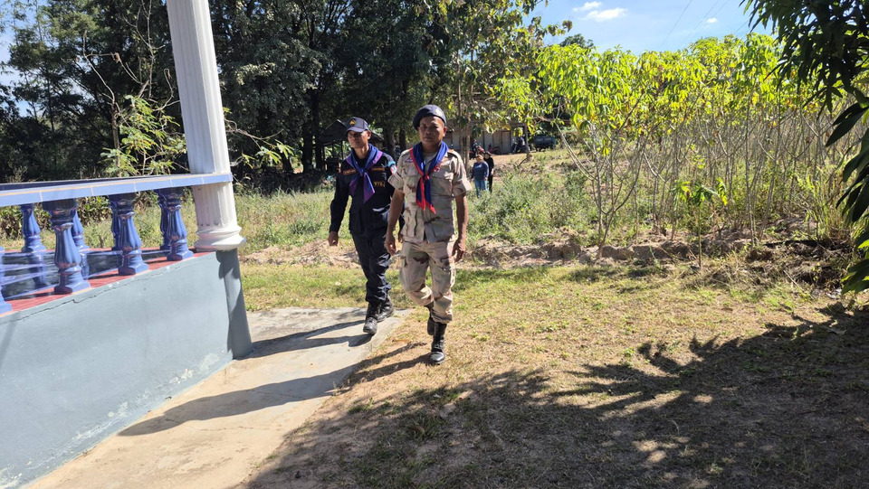 วันที่ 17 ธ.ค.2568 ชุดรักษาความปลอดภัยหมู่บ้าน หรือ ชรบ. อำเภอบ้านกรวด จังหวัดบุรีรัมย์ ได้เดินตรวจตราตามบ้านเรือนประชาชนในพื้นที่รับผิดชอบ เพื่อป้องกันไม่ให้ชาวบ้านในพื้นที่เสี่ยงภัย ที่อพยพไปอยู่ตามศูนย์พักพิงหรือบ้านญาติ แอบกลับเข้าพื้นที่ก่อนจะมีประกาศจากทางอำเภอหรือจังหวัด พร้อมทั้งเน้นย้ำให้ผู้ที่อาสาเฝ้าบ้าน และสัตว์เลี้ยง อย่าอยู่ห่างหลุมหลบภัยหากได้ยินเสียงปืนใหญ่ต้องรีบหลบเข้าบังเกอร์ทันที เนื่องจากยังมีการยิงปะทะต่อเนื่อง