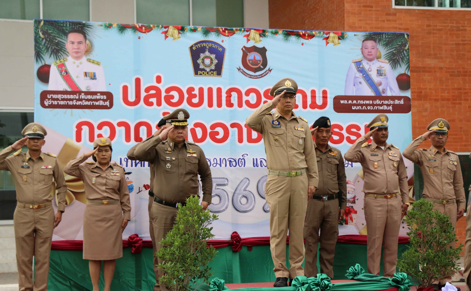 จังหวัดกาฬสินธุ์ร่วมกับตำรวจภูธรจังหวัดกาฬสินธุ์บูรณาการร่วมกับหน่วยงานที่เกี่ยวข้องทุกภาคส่วนปล่อยแถวระดมกวาดล้างอาชญากรรมและอำนวยความสะดวกด้านการจราจรในช่วงเทศกาลคริสต์มาสและช่วงปีใหม่ 2569 สร้างความปลอดภัยในชีวิตและทรัพย์สินให้กับพี่น้องประชาชน