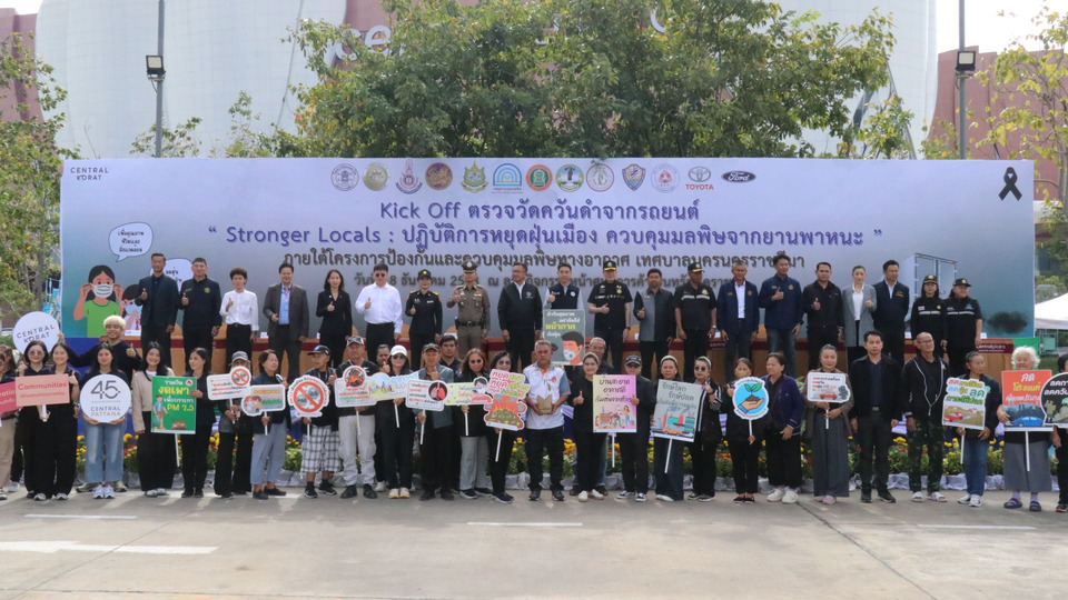 วันที่ 18 ธันวาคม 2568 นายบัลลังก์ ไวยศิริ รอง ผวจ.นครราชสีมา พร้อมนายมนตรี เกียรติเผ่าพันธ์ ผู้อำนวยการสำนักงานสิ่งแวดล้อมและควบคุมมลพิษที่ 11 นครราชสีมา (สคพ.11 นม.) นางยลดา หวังศุภกิจโกศล นายกองค์การบริหารส่วนจังหวัด (อบจ.) นครราชสีมา นางสาวสุวรรณา ปลอดโคกสูง รักษาราชการแทนขนส่งจังหวัดนครราชสีมา นายไกรสีห์ หล่อธราประเสริฐ รองนายกเทศมนตรี (ทน.) นครราชสีมา และผู้แทนหน่วยงานที่เกี่ยวข้อง ร่วมเปิดกิจกรรม Kick off ตรวจวัดควันดำจากรถยนต์พร้อมลงนามร่วมขับเคลื่อนเมืองปลอดฝุ่น จากนั้นได้แจกพันธุ์ไม้ จำนวน 300 ต้น จัดนิทรรศการรณรงค์ประชาสัมพันธ์และให้ความรู้ ตั้งจุดบริการตรวจเช็คสภาพปรับปรุงเครื่องยนต์ กำหนดเป้าหมายในการลดการปล่อยควันดำจากรถยนต์ 20 % โดยตรวจสอบรถยนต์ไม่น้อยกว่า 900 คัน ตั้งแต่บัดนี้ถึงวันที่ 31 มีนาคม 69 ขณะตั้งจุดตรวจบนทางหลวงหมายเลข 2 ถ.มิตรภาพ บริเวณหน้าศูนย์การค้าเซ็นทรัลโคราช ไม่ถึง 1 ชั่วโมง เจ้าหน้าที่ได้ตรวจพบรถยนต์ควันดำเกิดค่ามาตรฐานจำนวน 5 คัน