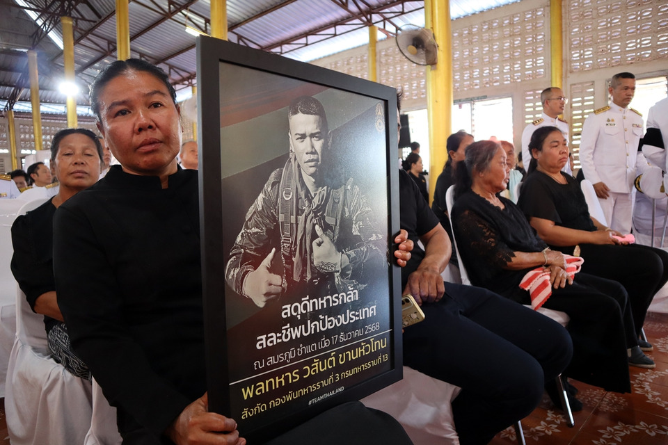วันที่ 19 ธ.ค.68 เวลา 15.30 น. ร่างของ พลทหารวสันต์ ขานหัวโทน อายุ 22 ปี สังกัดค่ายเจ้าพระยาสุรวงศ์วัฒนศักดิ์ กรมทหารราบที่ 13 พัน 3 (ร.13 พัน 3) จังหวัดอุดรธานี ซึ่งเสียชีวิตจากการปฏิบัติหน้าที่ในเหตุปะทะบริเวณแนวชายแดนจังหวัดศรีสะเกษ ได้เคลื่อนย้ายถึง วัดทุ่งสว่างบ้านเทื่อม ตำบลเขือน้ำ อำเภอบ้านผือ จังหวัดอุดรธานี บ้านเกิดของผู้วายชนม์ เป็นที่เรียบร้อยแล้ว ตลอดเส้นทางการเคลื่อนย้ายร่าง มีประชาชนจำนวนมากออกมายืนรอรับอย่างสงบ พร้อมโบกสะบัดธงชาติไทย แสดงความอาลัยและสดุดีความกล้าหาญ ยกย่องพลทหารวสันต์เป็น วีรบุรุษทหารกล้าของแผ่นดิน ท่ามกลางบรรยากาศแห่งความโศกเศร้าและความภาคภูมิใจของชาวบ้านในพื้นที่ เมื่อขบวนถึงวัดทุ่งสว่างบ้านเทื่อม เจ้าหน้าที่สารวัตรทหาร (สห.) ได้เชิญโลงศพเข้าสู่ศาลา ก่อนตั้งบำเพ็ญกุศลตามกำหนดการพระราชทาน โดยตลอด 2 ข้างทางมีข้าราชการยืนตอยรับอย่างสมเกียรติ