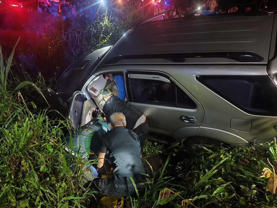 ที่เกิดเหตุพบรถยนต์โตโยต้า ฟอร์จูนเนอร์ สีบรอนซ์เงิน ทะเบียนจังหวัดสงขลา ตกลงไปอยู่ข้างทาง สภาพประตูฝั่งผู้โดยสารมีรอยกระสุนปืนลูกซอง 2 นัด กระสุนทะลุกระจกไปอีกฝั่ง ภายในรถพบร่าง นายพยอม (สงวนนามสกุล) อายุ 63 ปี ถูกยิงเข้าที่ชายโครงด้านขวาและข้อศอก เสียชีวิตในที่เกิดเหตุ เจ้าหน้าที่พบปลอกกระสุนปืนลูกซอง จำนวน 2 ปลอก จึงเก็บไว้เป็นหลักฐาน