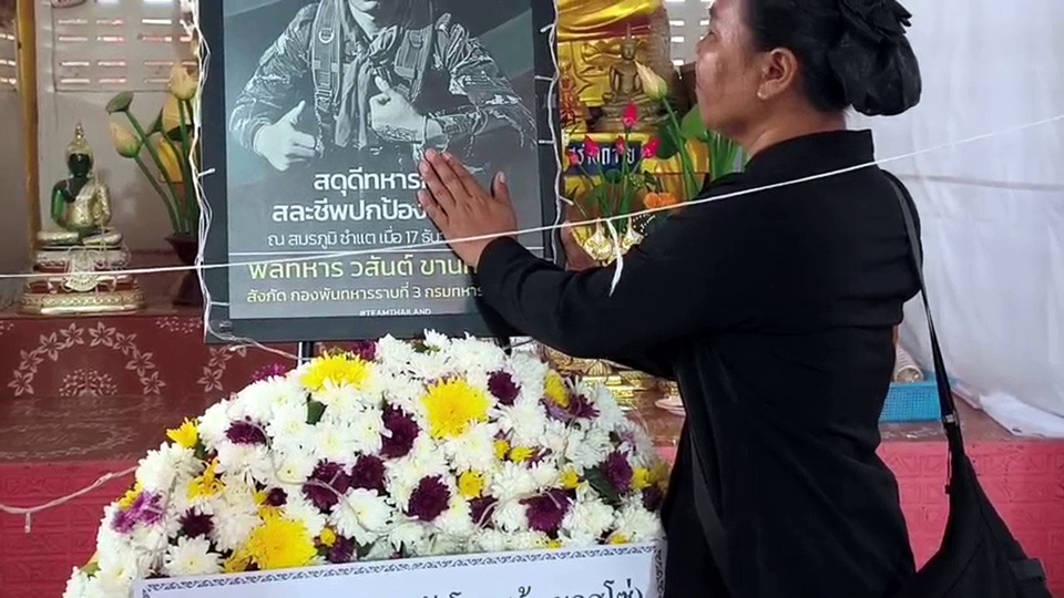 จุกอก!! แม่บอกรักลาต่อหน้ารูปลูกชายวีรบุรุษทหารกล้าสั้นๆ แต่มีความหมาย "มื้อนี้หล่าบ่ได้อยู่นำแม่แล้วเด้อ แม่ฮักบักหล่าเด้อ" บ่ต้องห่วงแม่ บ่ต้องห่วงน้อง บ่ต้องห่วงยาย ขอให้บักหล่าไปสบายเด้อ ก่อนจะมีพิธีพระราชทานเพลิงศพ