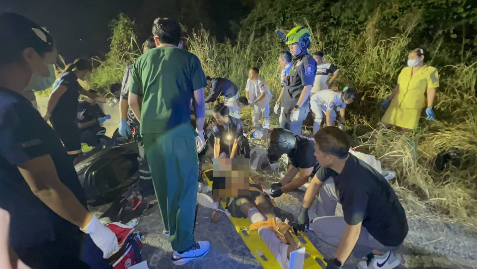 เมื่อเวลา 01.06 น. วันที่ 23 ธันวาคม 2568 ศูนย์วิทยุ หน่วยกู้ภัยสว่างบริบูรณ์ธรรมสถานเมืองพัทยา รับแจ้งอุบัติเหตุรถจักรยานยนต์ เสียหลักพุ่งชนแบริเออร์ มีผู้ได้รับบาดเจ็บหลายราย เหตุเกิดบนถนนเส้นเลียบทางรถไฟ ระหว่างซอยวัดธรรมสามัคคี มุ่งหน้าซอยเขาตาโล ต.หนองปรือ อ.บางละมุง จ.ชลบุรี หลังรับแจ้งจึงนำกำลังเจ้าหน้าที่อาสาสมัครกู้ภัยฯ รีบไปตรวจสอบ