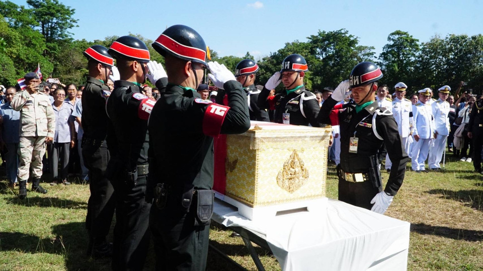 วันที่ 23 ธันวาคม 2568 บรรยากาศเมื่อเวลา 11.10 น.ณ ลานสนามฟุตบอลโรงเรียนละหานเจริญวิทยา ต.ละหาน อ.จัตุรัส จ.ชัยภูมิ บรรยากาศเป็นไปด้วยความโศกเศร้าและภาคภูมิใจ ในพิธีรับร่าง สิบเอก กัมปนาท ทองแสง สังกัดกองพันทหารราบที่ 1 กรมทหารราบที่ 21 รักษาพระองค์ (ร.21 พัน.1 รอ.) วีรบุรุษผู้สละชีพขณะปฏิบัติหน้าที่ป้องกันอธิปไตย ณ บริเวณบ้านคลองแผง อ.ตาพระยา จ.สระแก้ว เมื่อวันที่ 22 ธันวาคม ที่ผ่านมา