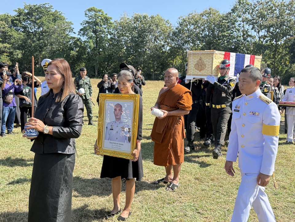 โดยขบวนร่างไร้วิญญาณถูกเคลื่อนย้ายด้วยเฮลิคอปเตอร์มาถึงพื้นที่ ก่อนจะเคลื่อนขบวนต่อไปยังวัดเจริญสูง บ้านหนองหญ้าข้าวนก ซึ่งตลอดระยะทาง 500 เมตร มีประชาชนชาวชัยภูมินับพันคนพร้อมใจกันยืนสงบนิ่งและโบกธงชาติไทย เพื่อสดุดีดวงวิญญาณทหารกล้าที่ปฏิบัติหน้าที่จนวินาทีสุดท้าย