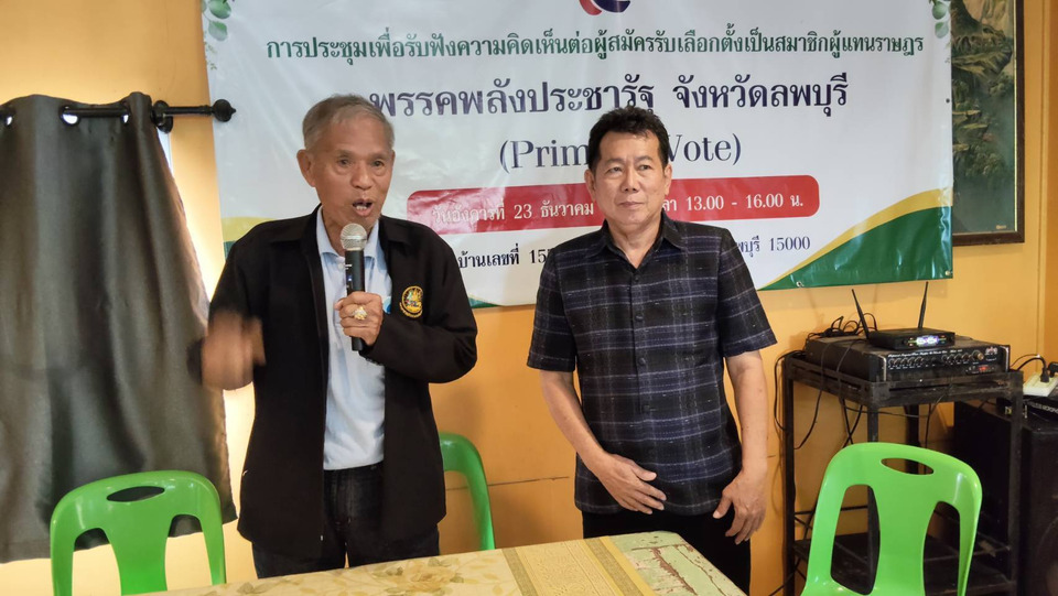 เมื่อวันที่ 24 ธ.ค.68 ที่สำนักงานพรรคพลังประชารัฐ ตำบลป่าตาล อำเภอเมือง จังหวัดลพบุรี เชิญประชาชนมาร่วมประชุมเพื่อรับฟังความคิดเห็นต่อผู้สมัครเลือกตั้งเป็นสมาชิกสภาผู้แทนราษฎร พรรคพลังประชารัฐ (Primary Vote) พร้อมคัดเลือกประธานในการคัดเลือก เพื่อจะคัดเลือกตัวว่าที่ผู้สมัคร สส.จังหวัดลพบุรี จำนวน 4 เขต มีผู้แจ้งความประสงค์ว่าจะลงสมัครสมัครพรรคพลังประชารัฐแล้ว จะนวน 4 คน มีนายพิชัย เกียรติวินัยสกุล อดีตสมาชิกสภาผู้แทนราษฏร จะลงสมัครพรรค พลังประชารัฐ เขต 1 ,นายปณทัต มากผล จะลงสมัครพรรคพลังประชารัฐ , ดร.สุชาติ ลายน้ำเงิน อดีตสมาชิกสภาผู้แทนราษฏร จะลงสมัคร พรรคพลังประชารัฐ เขต 3 และ นายสนั่น พรหมสุข อดีตสมาชิกสภาจังหวัดลพบุรี จะลงสมัครเขต 4 การประชุม (Primary Vote) ในวันนี้ได้เลือก พันตรีประเสริฐ สุขสกุล อดีตนายทหารนอกราชการ เป็นประธานในวันนี้ และ จะส่งรายชื่อทั้งหมดให้ทางพรรค พปชร.เป็นคนเคาะว่าจะส่งผู้ใด