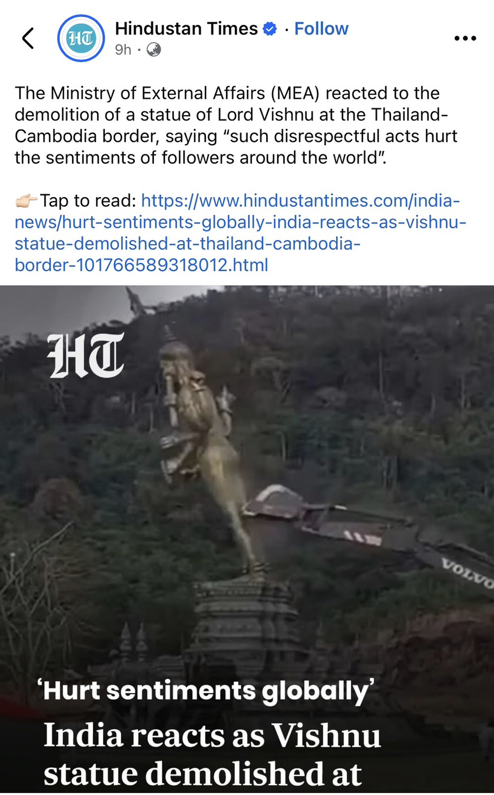 Thailand holds deep respect for all religions and belief systems, including Hinduism, which shares longstanding historical and cultural connections with countries across Southeast Asia. The Thai side is mindful of the feelings of people of all faiths worldwide and expresses sincere regret for any discomfort that may have arisen from misunderstandings due to the circulation of images without full context.