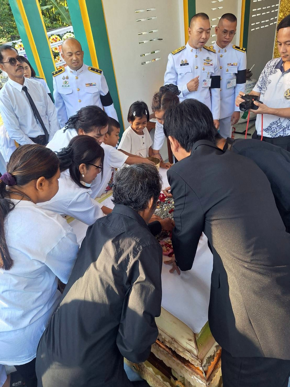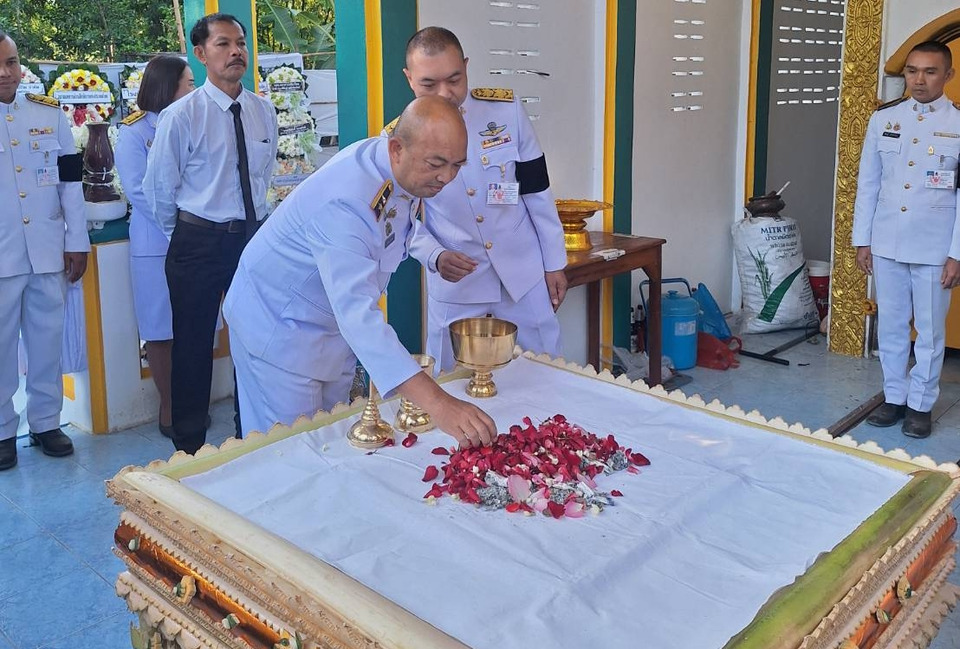 นางอุ่น คลังประโคน อายุ 79 ปี แม่ของจ่าเริง ได้ใช้มือหยิบเถ้ากระดูกของลูกชายใส่โกศด้วยตัวเอง ก่อนที่เจ้าหน้าที่ทหารจะช่วยบรรจุอัฐิห่อด้วยผ้าขาวเพื่อนำไปเก็บรักษาไว้ยังศาลาวัด