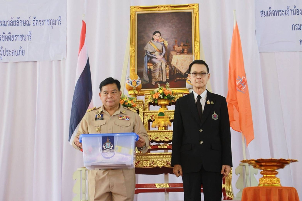วันที่ 25 ธ.ค.68 เวลา 10.30 น. ณ โดมสำนักงานเทศบาลตำบลบางจัก ตำบลบางจัก อำเภอวิเศษชัยชาญ จังหวัดอ่างทอง สมเด็จพระเจ้าน้องนางเธอ เจ้าฟ้าจุฬาภรณวลัยลักษณ์ อัครราชกุมารี กรมพระศรีสวางควัฒน วรขัตติยราชนารี โปรดให้ นายบัญชา เตชะสกุล รองประธานสถาบันวิจัยจุฬาภรณ์ฝ่ายกิจกรรมพิเศษ เชิญสิ่งของพระราชทาน จำนวน 500 ชุด มอบให้แก่ผู้ประสบอุทกภัยในพื้นที่อำเภอวิเศษชัยชาญ โดยมีนายนที มนตริวัต ผู้ว่าราชการจังหวัดอ่างทอง เป็นผู้แทนประชาชนในพื้นที่รับมอบ และได้รายงานสถานการณ์อุทกภัยในพื้นที่จังหวัดอ่างทอง