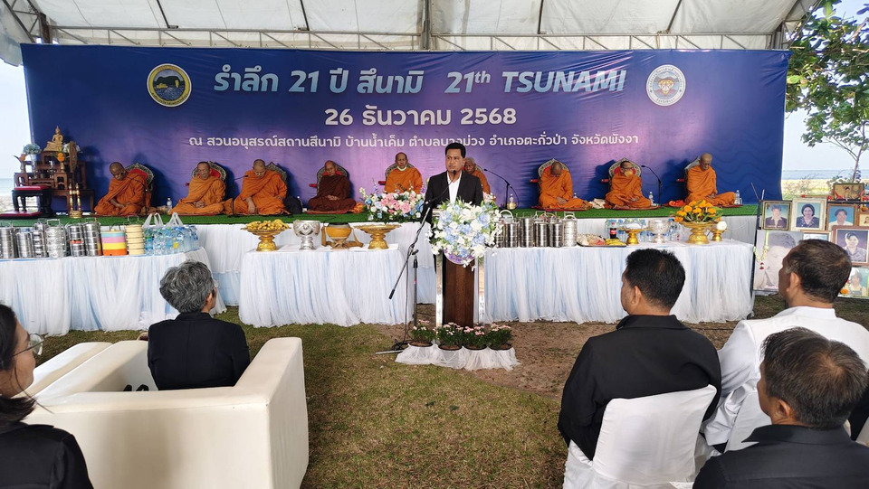 ผู้สื่อข่าวรายงายว่าที่อนุสรณ์สถานสึนามิบ้านน้ำเค็ม ต.บางม่วง อ.ตะกั่วป่า จ.พังงา มีการจัดกิจกรรมรำลึกครบรอบ 21 ปี ในวันที่ 26 ธ.ค. 2547 จากกรณีเหตุการร์คลื่นยักษ์สึนามิพัดถล่ม 6 จังหวัดอันดามัน ภูเก็ต พังงา กระบี่ ระนอง ตรัง สตูล โดยมีนายดำรง ฉิมทับ นายอำเภอตะกั่วป่า เป็นประธานวางดอกไม้ และองค์การบริหารส่วนตำบลบางม่วง พร้อมด้วยหัวหน้าส่วนราชการ แขกผู้มีเกียรติ และเครือข่ายผู้ประสบภัยสึนามิเข้าร่วม ซึ่งเหตุการณ์ครั้งนั้นได้ทำให้มีผู้เสียชีวิต และสูญหายจำนวนมาก รวมทั้งบ้านเรือนประชาชน ห้างร้าน สถานประกอบการต่างๆ ได้รับผลกระทบ