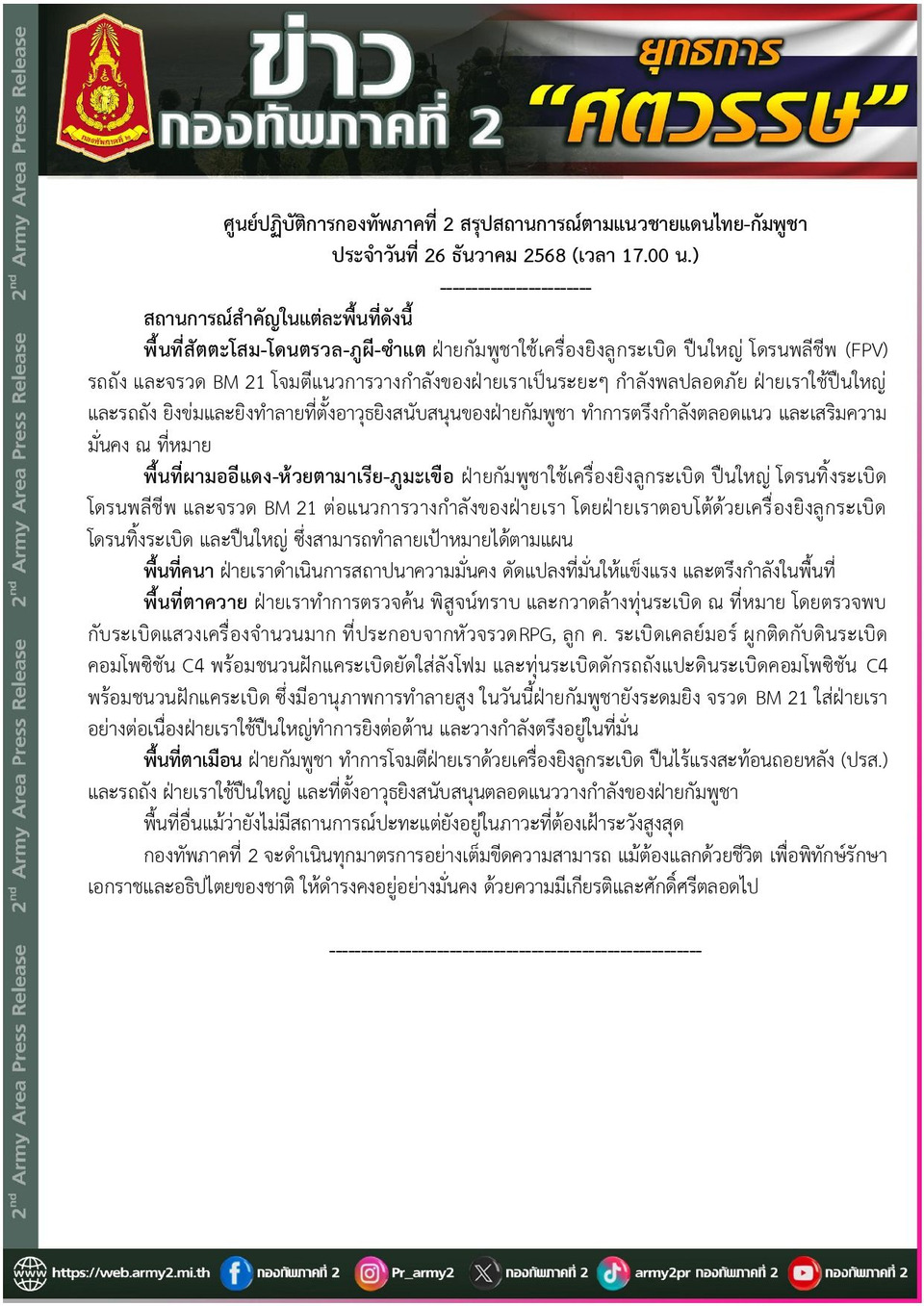 #กองทัพภาคที่2 #กองทัพบก #RTA #ชายแดนไทยกัมพูชา #BM21 #โดรนพลีชีพ #ความมั่นคง #ข่าวทหาร