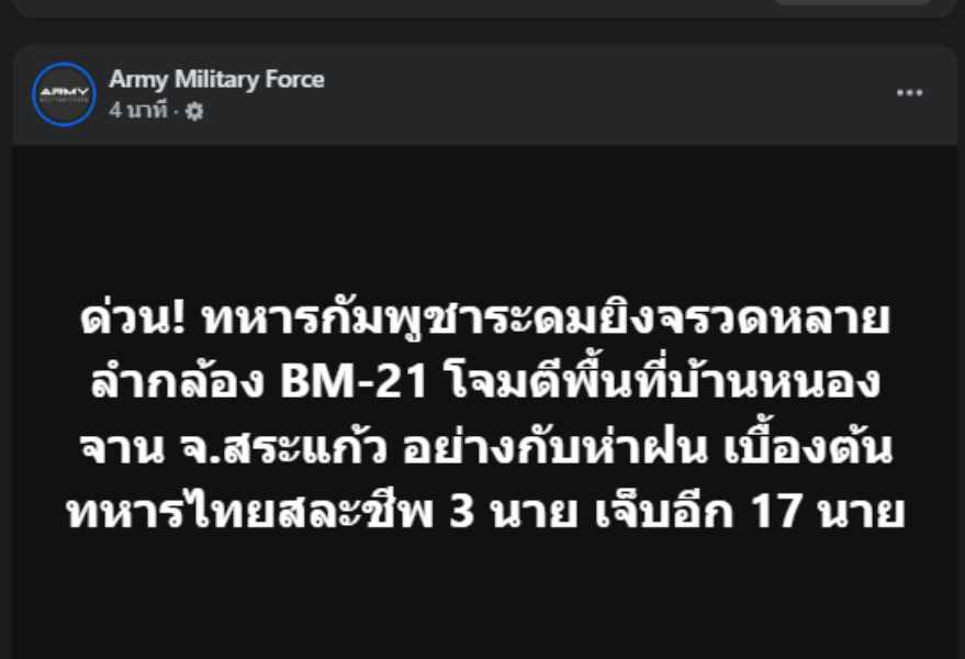 วันที่ 26 ธ.ค.68 เพจเฟซบุ๊ก Army Military Force โพสต์ข้อความระบุว่า...