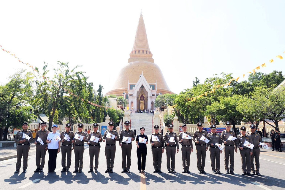 ตร.ภูธรนครปฐม ขานรับนโยบายสำนักงานตำรวจแห่งชาติ เปิดกิจกรม Kick Off “นครปฐม 1 หมวก 1น้ำใจ พิทักษ์ภัยทางถนน” มุ่งเน้นการมีส่วนร่วมจากทุกภาคส่วน เพื่อลดความสูญเสียจากอุบัติเหตุทางถนน โดยเฉพาะการบาดเจ็บรุนแรงที่ศีรษะจากการไม่สวมหมวกนิรภัย และมีกลไกการติดตามการใช้หมวกนิรภัยโดยใช้ระบบ QR code