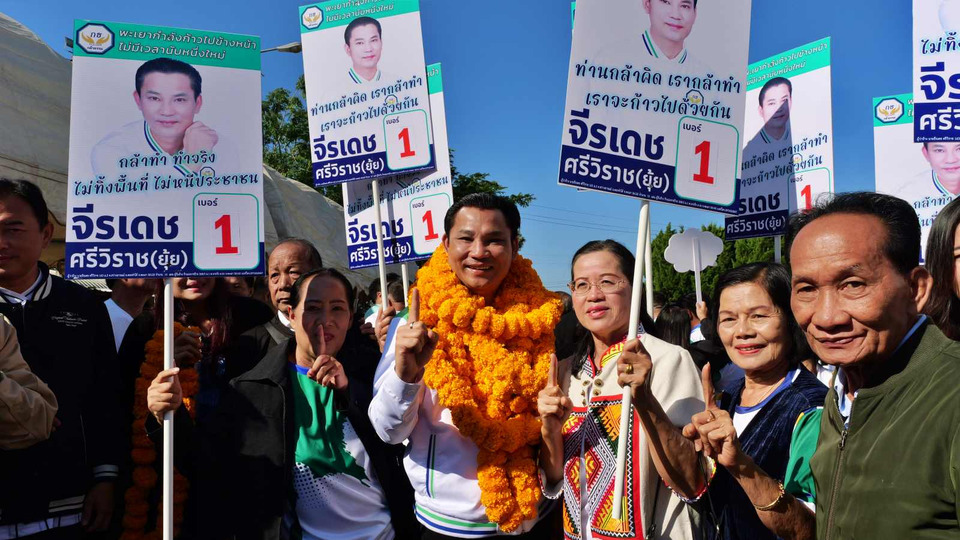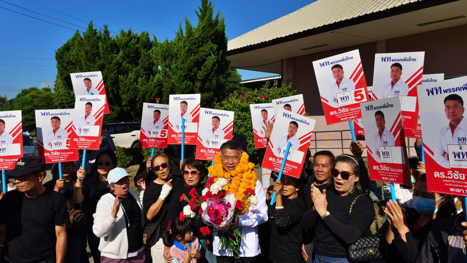 สมัคร ส.ส. พะเยาเขต 3 เบอร์ 1 นายจีรเดช ศรีวิราช พรรคกล้าธรรม เบอร์ 2 นายรุ่งวิกรัย ครุฑธิยัง พรรคประชาชน เบอร์ 3 นายอำนาจ วิชัย พรรคเพื่อไทย เบอร์ 4 นายศรายุทธ หน่อแก้ว พรรคภูมิใจไทย