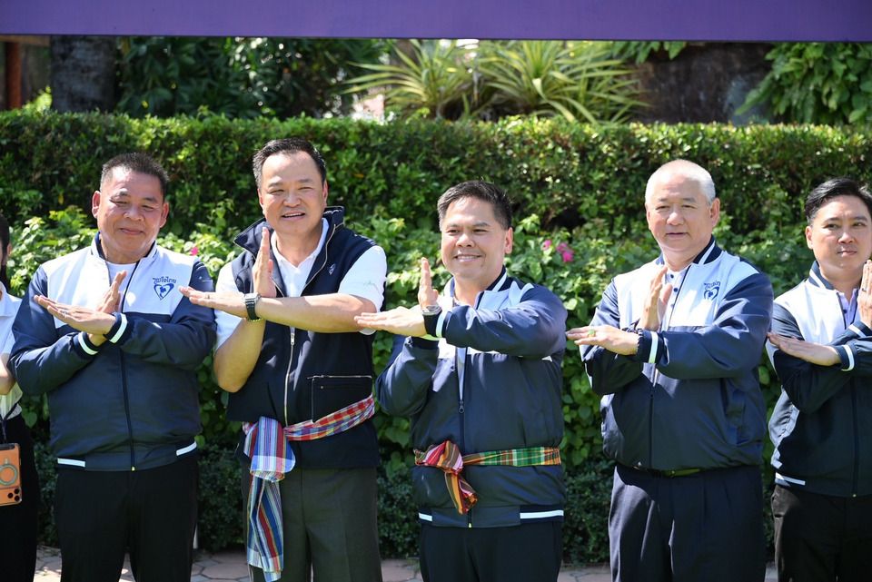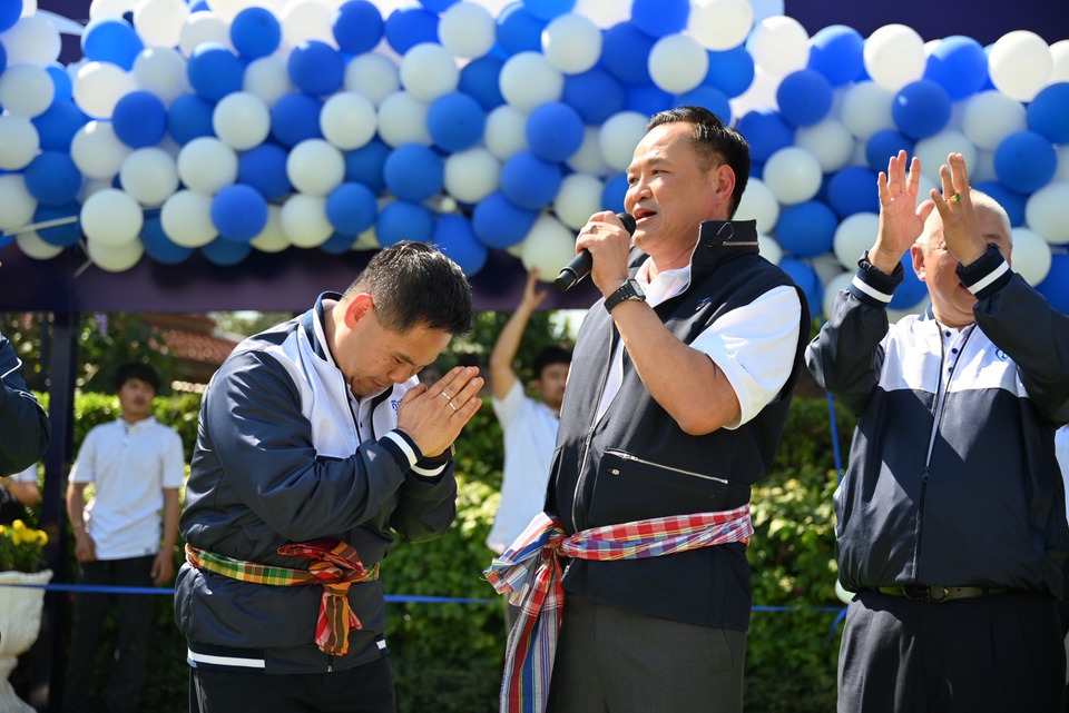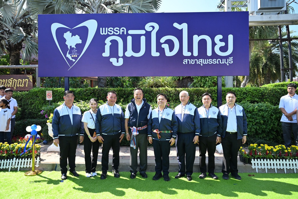 จากนั้น เดินทางไปยังที่ทำการพรรคภูมิใจไทยจังหวัดสุพรรณบุรี เพื่อทำพิธีเปิดป้ายที่ทำการพรรค ภท. สาขาจังหวัดสุพรรณบุรีอย่างเป็นทางการ